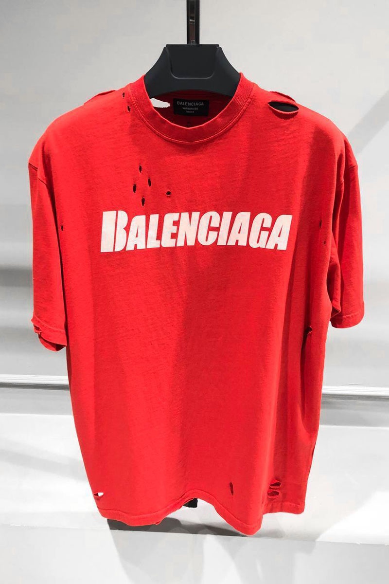 Красная оверсайз футболка Balenciaga с рваной отделкой