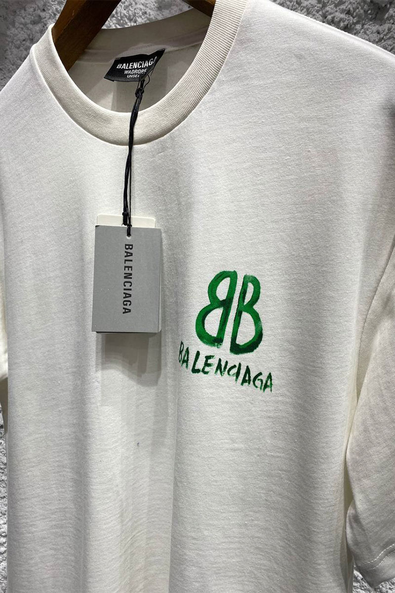 Мужская белая футболка Balenciaga graffiti-logo
