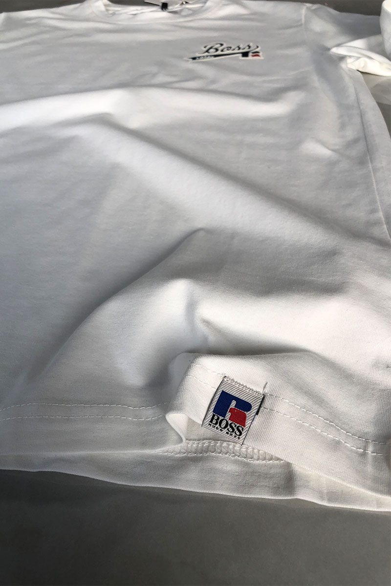 Мужская белая футболка Hugo Boss x Russell Athletic