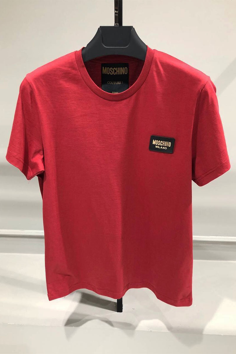 Мужская бордовая футболка Moschino logo-patch