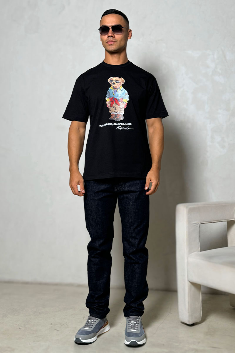 Мужская чёрная футболка Роlо Ralрh Lаurеn "Bear"
