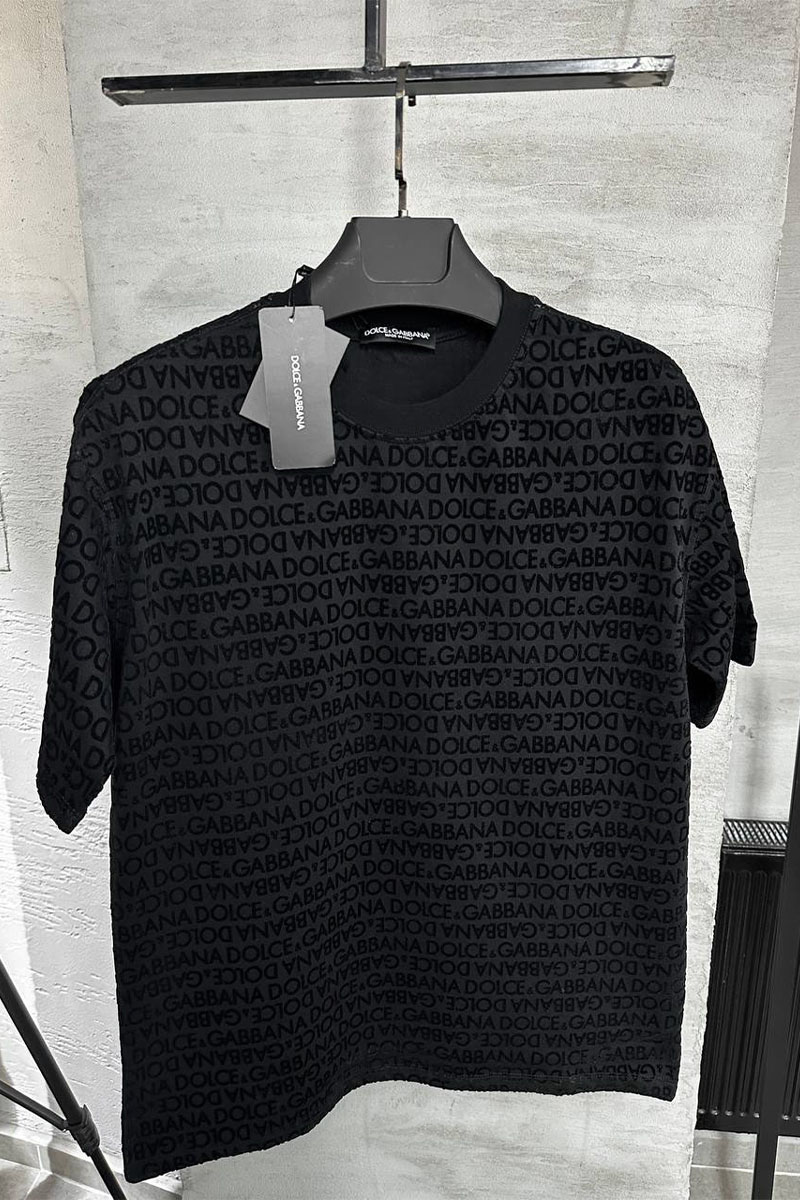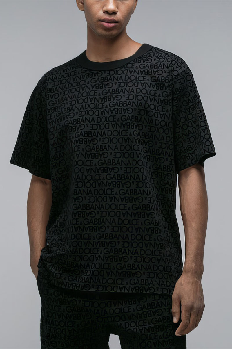 Мужская чёрная футболка Dolce & Gabbana monogram all-over