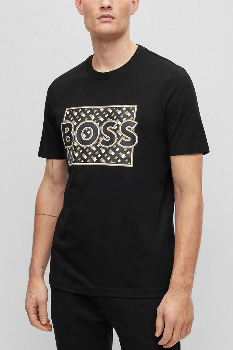 Мужская чёрная футболка Hugo Boss logo-print