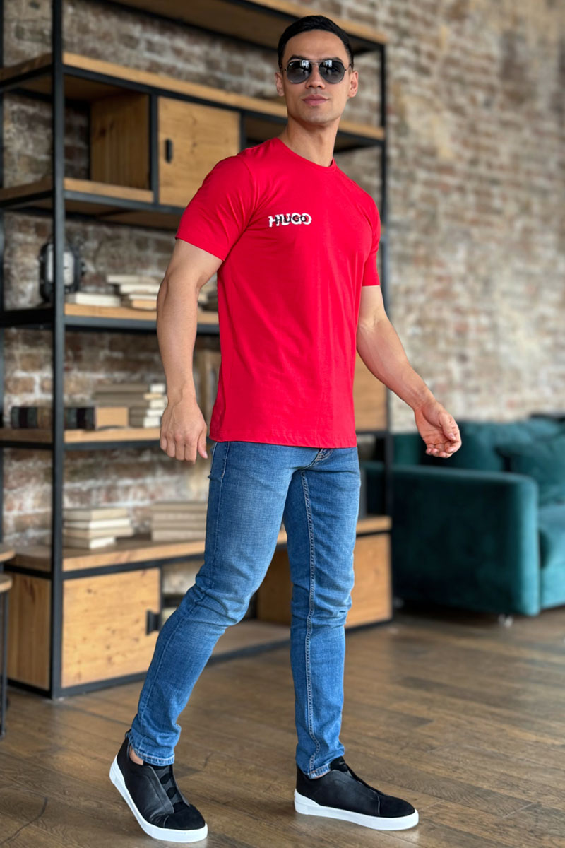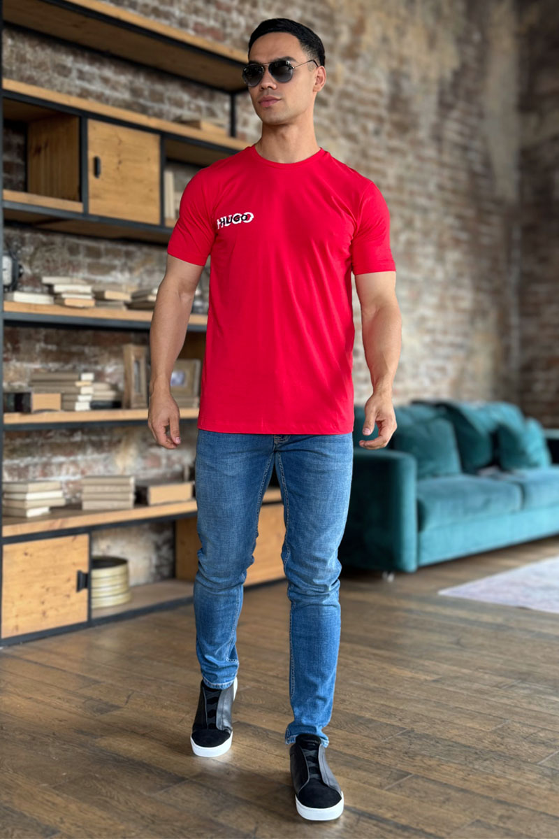 Мужская красная футболка Hugo Boss logo print