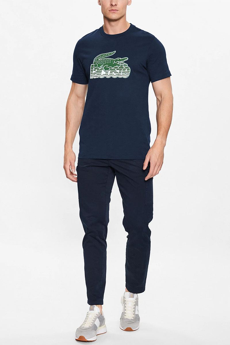 Мужская синяя футболка Lacoste crocodile print