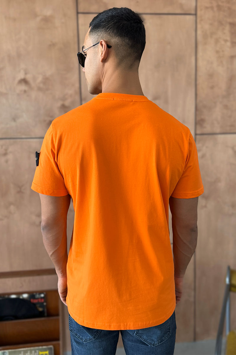 Оранжевая мужская футболка с патчем на плече Stone Island