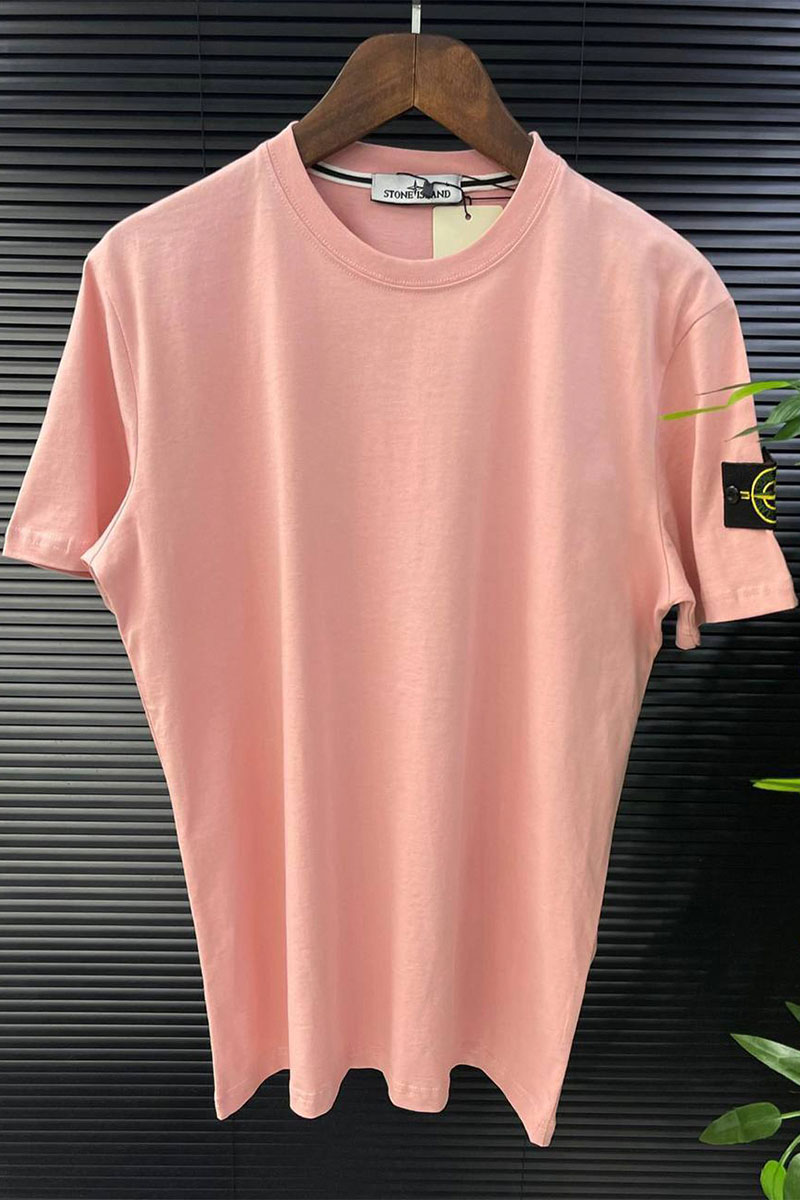 Розовая мужская футболка с патчем на плече Stone Island