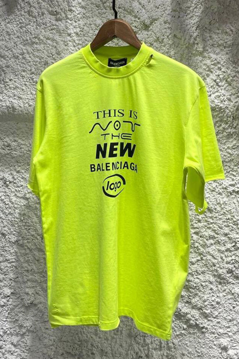 Салатовая оверсайз футболка Balenciaga с рваной отделкой