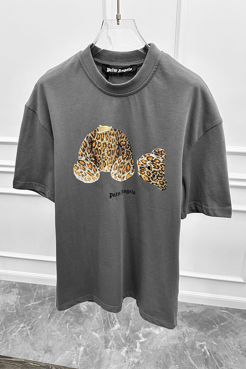 Серая оверсайз футболка Palm Angels Leopard Bear