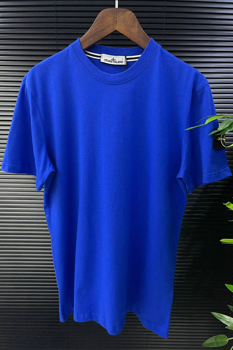 Синяя мужская футболка с патчем на плече Stone Island