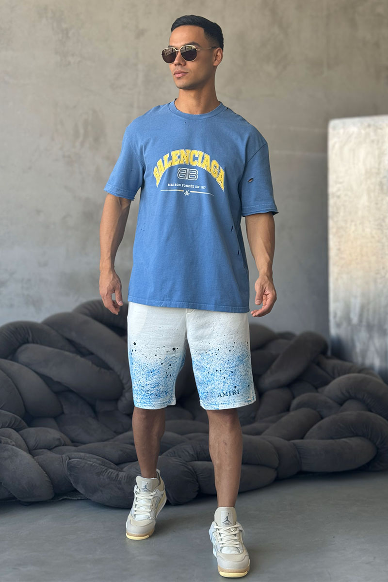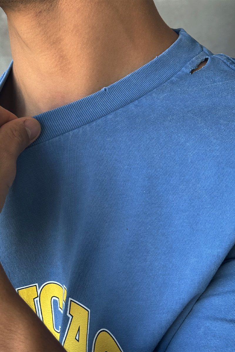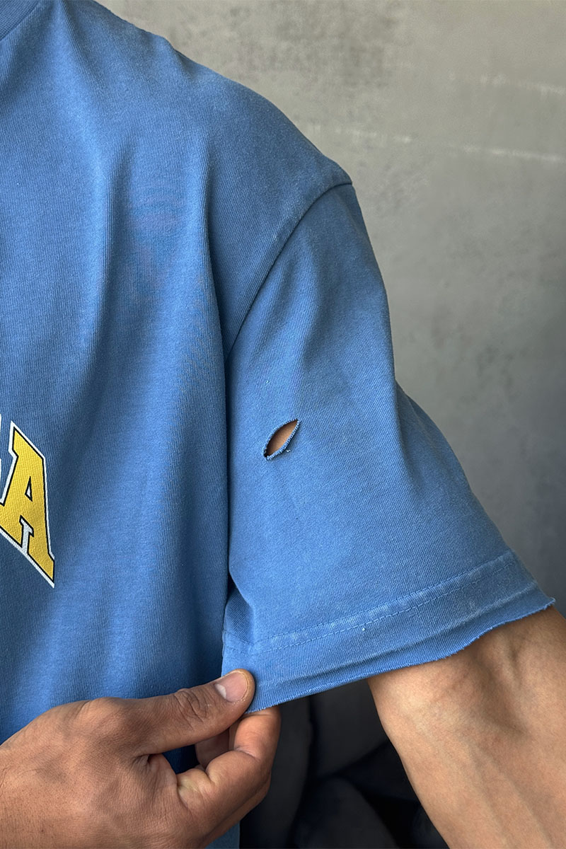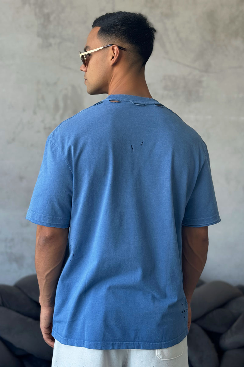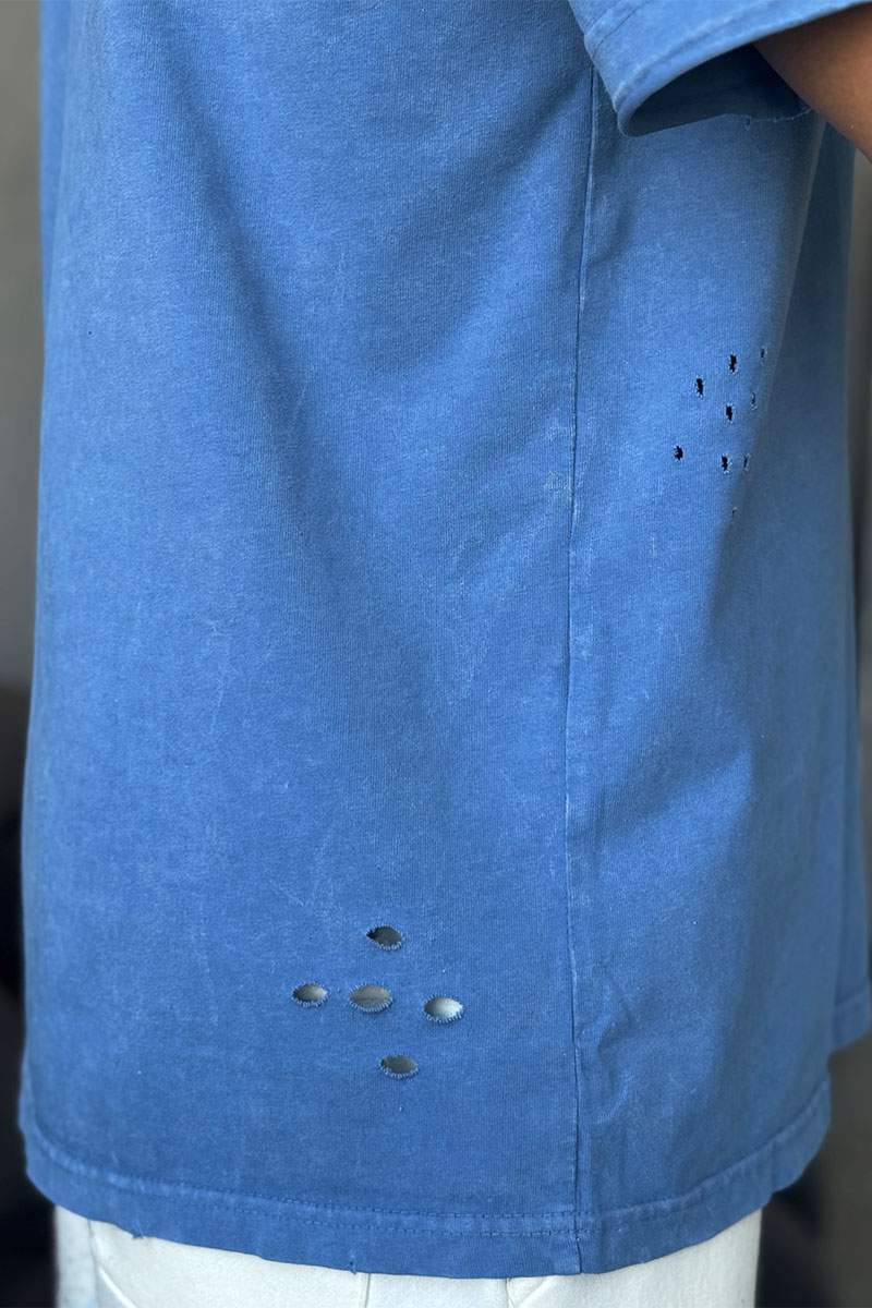 Синяя оверсайз футболка Balenciaga с рваной отделкой