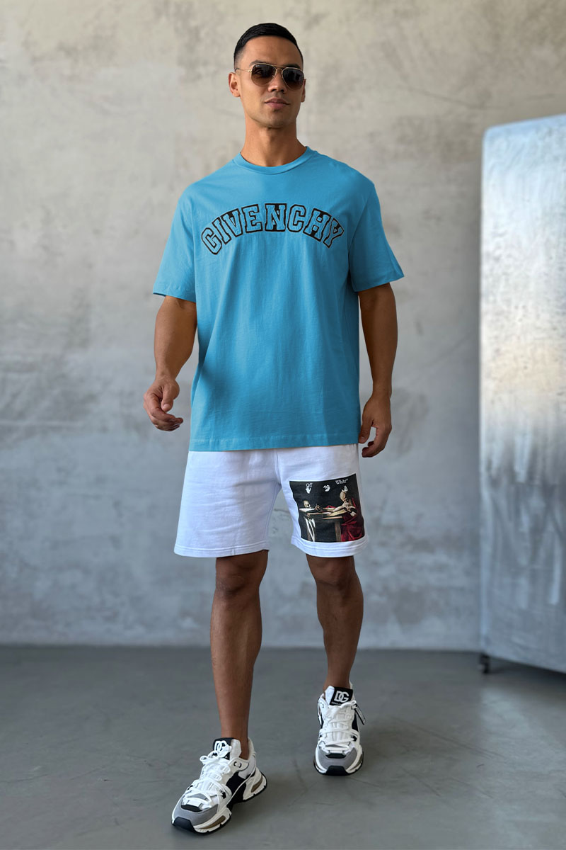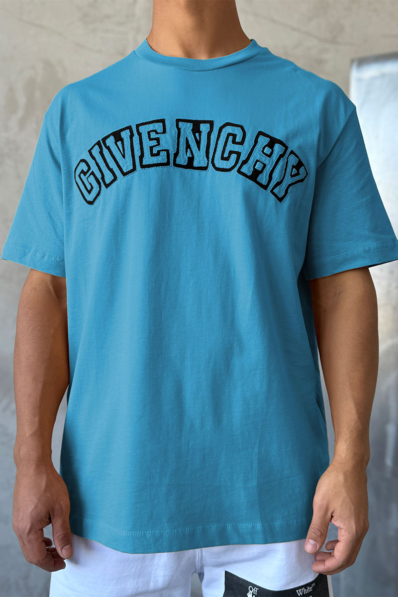 Синяя оверсайз футболка Givenchy college logo-embroidered