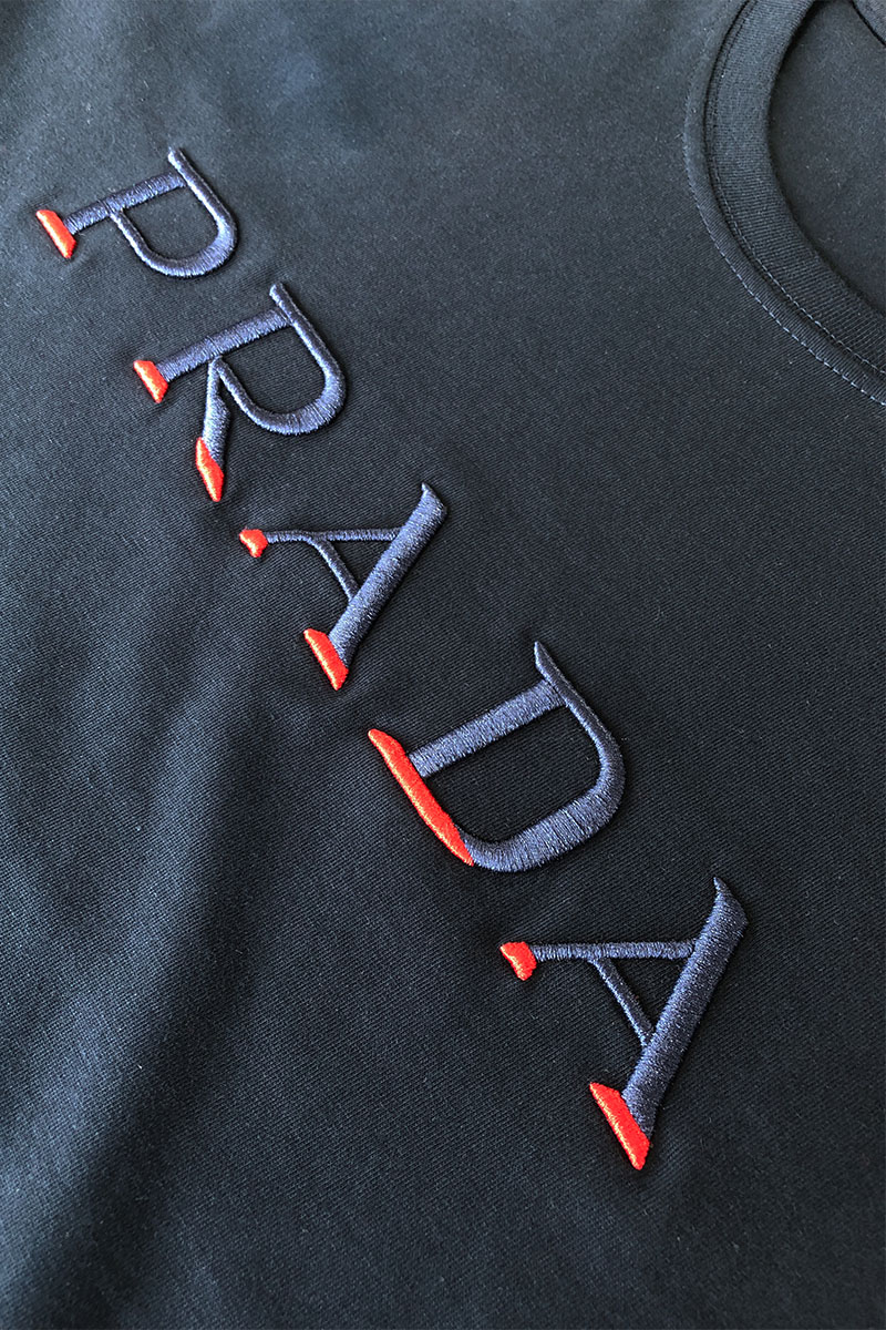 Тёмно-синяя мужская футболка Prada embroidered logo