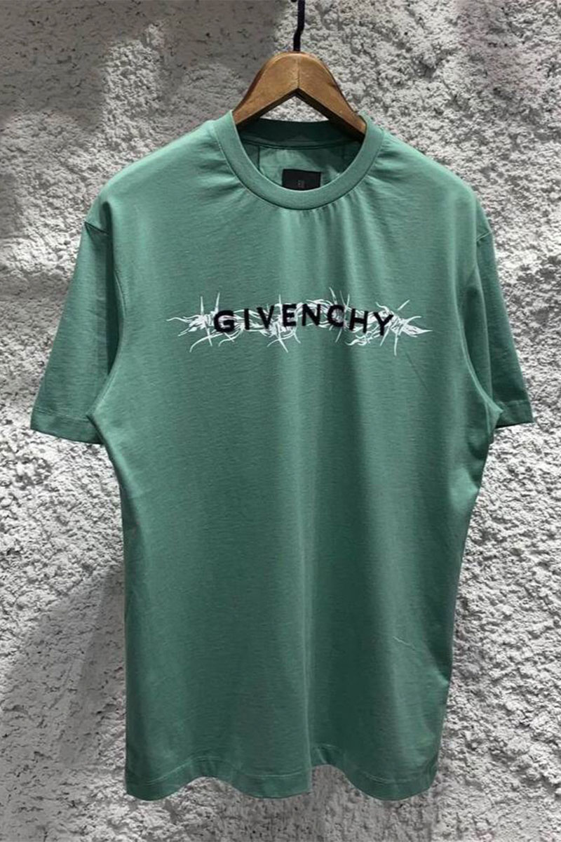 Зелёная оверсайз футболка Givenchy Barbed Wire-print