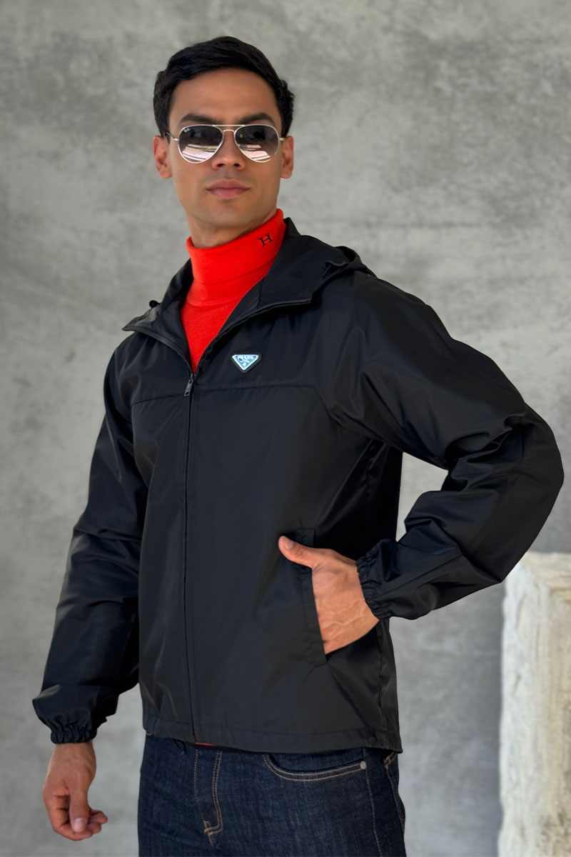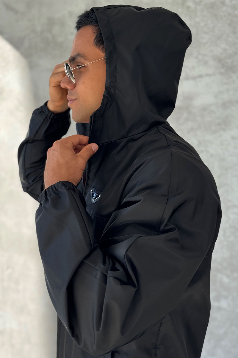 Мужская чёрная ветровка Prada logo-plaque