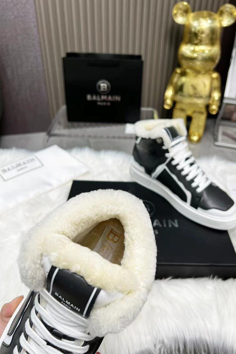 Кожаные кроссовки с мехом Balmain high-top - Black / White
