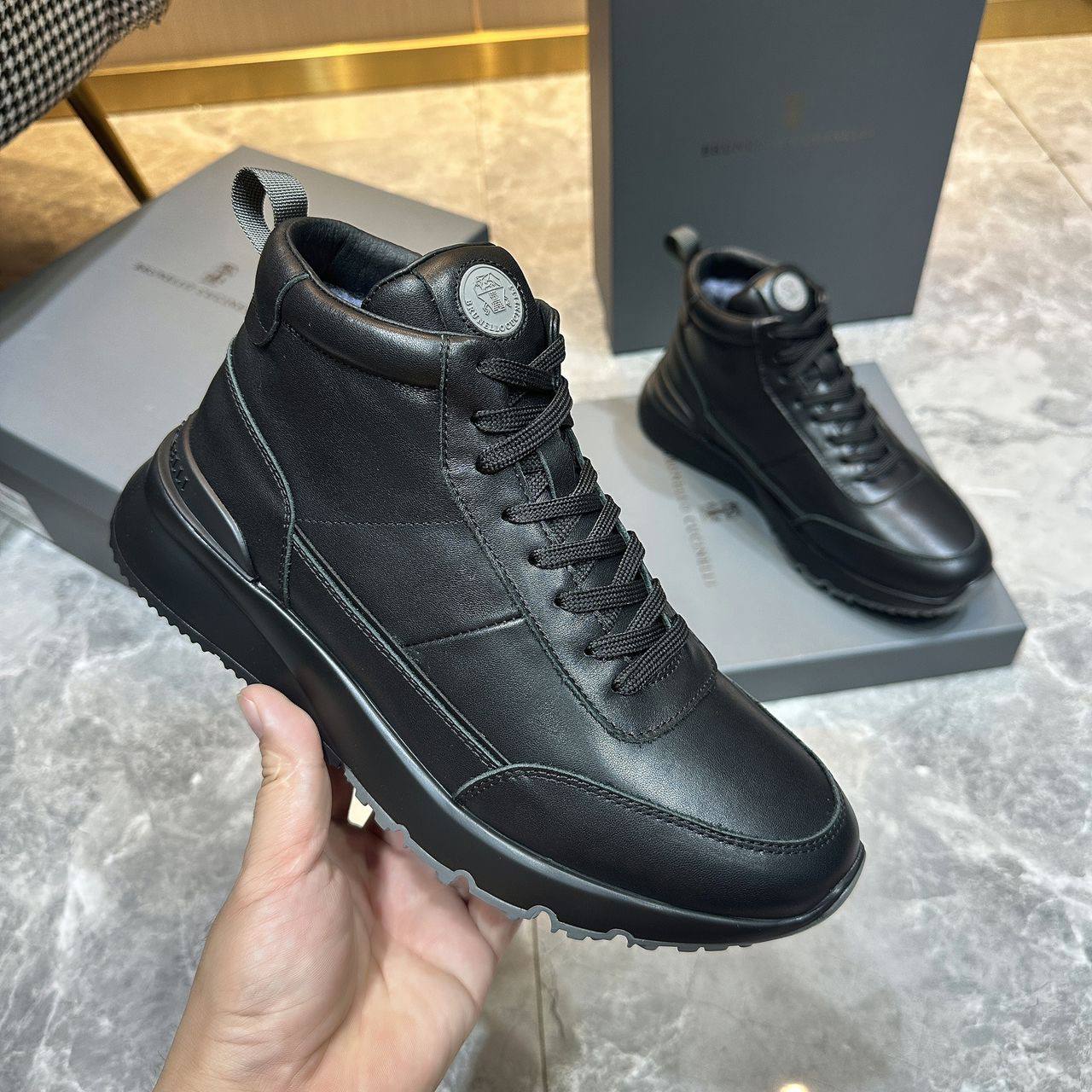 Кожаные кроссовки с мехом Brunello Cucinelli high-top - Black