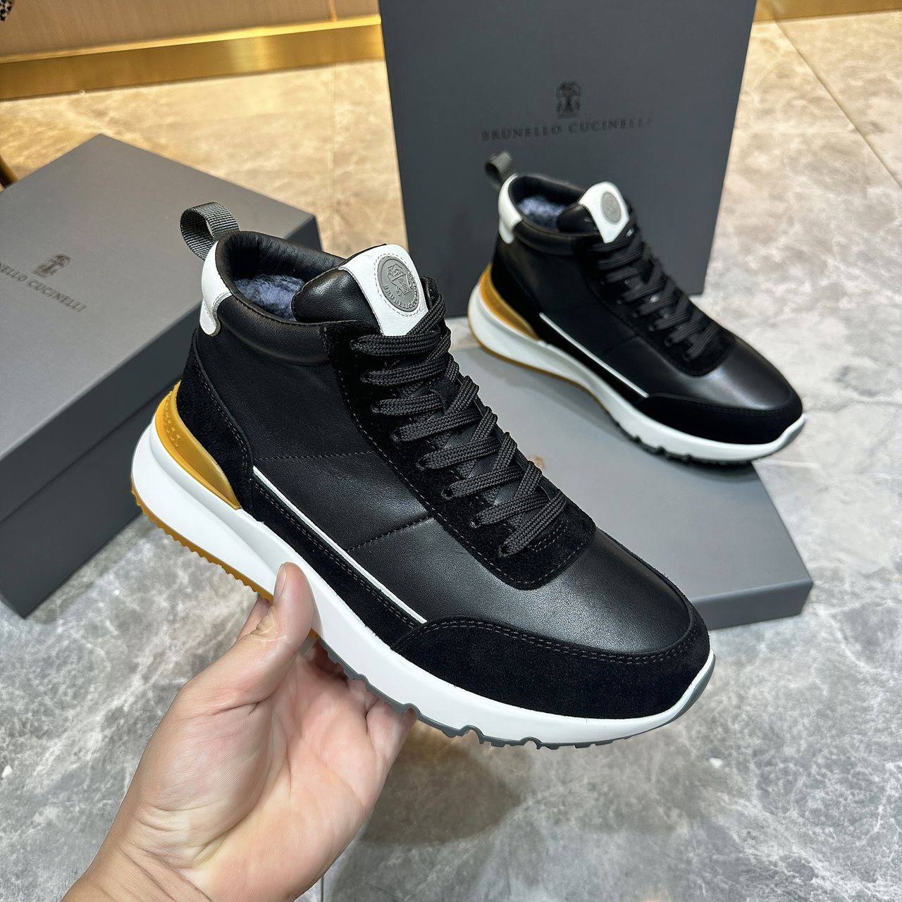 Кожаные кроссовки с мехом Brunello Cucinelli high-top - Black