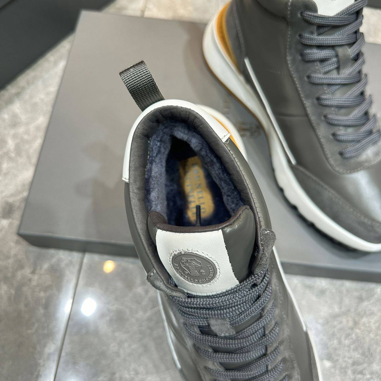 Кожаные кроссовки с мехом Brunello Cucinelli high-top - Grey
