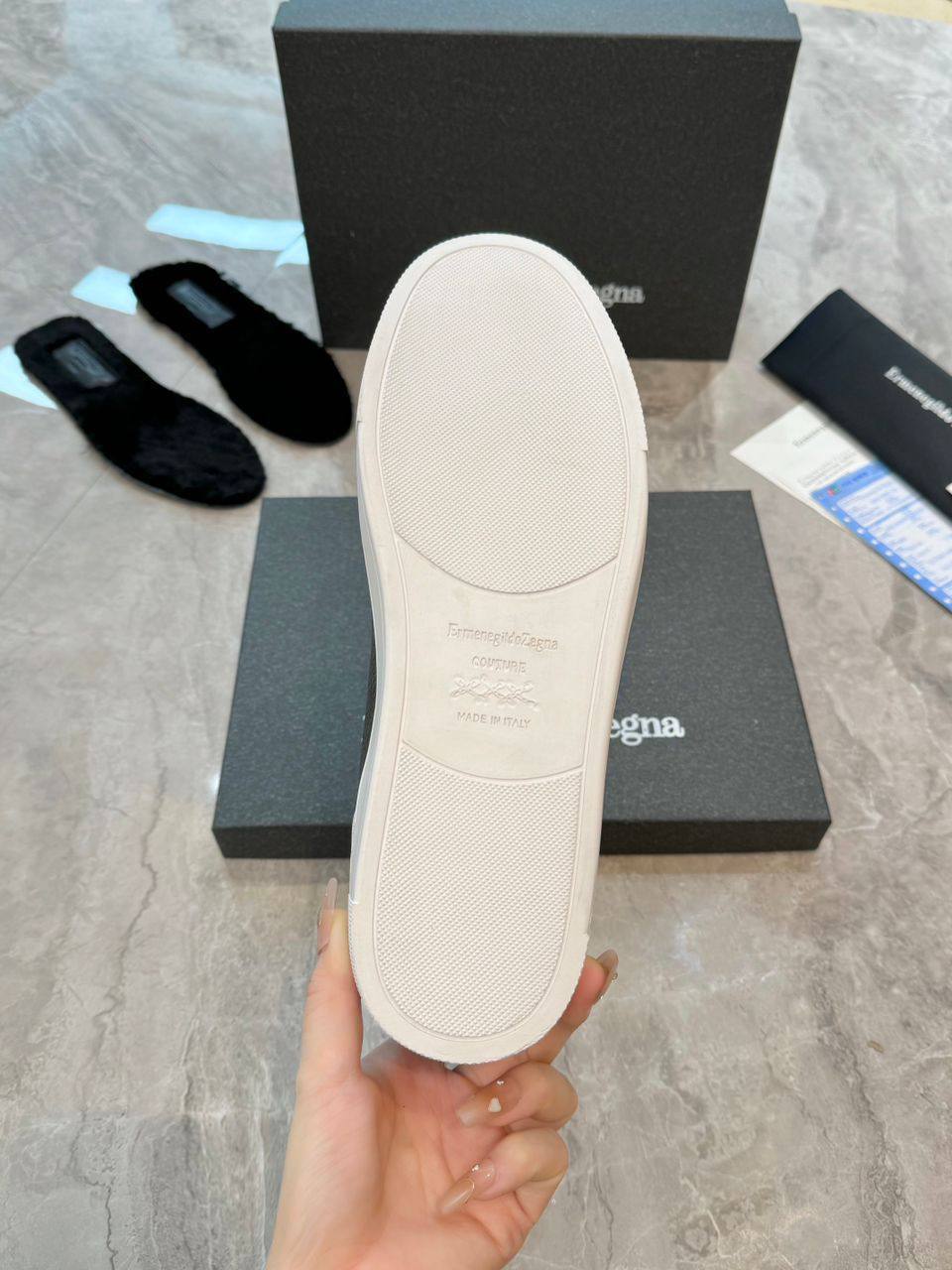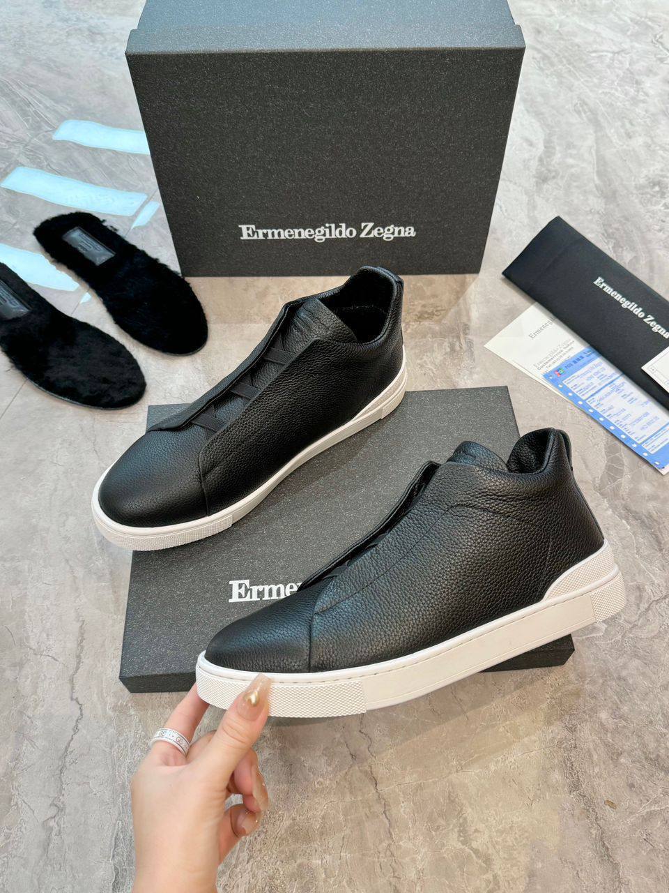 Кроссовки с мехом Ermenegildo Zegna Triple Stitch - Black