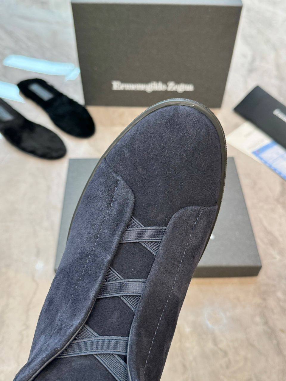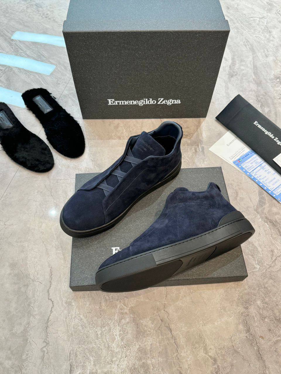 Кроссовки с мехом Ermenegildo Zegna Triple Stitch - Navy