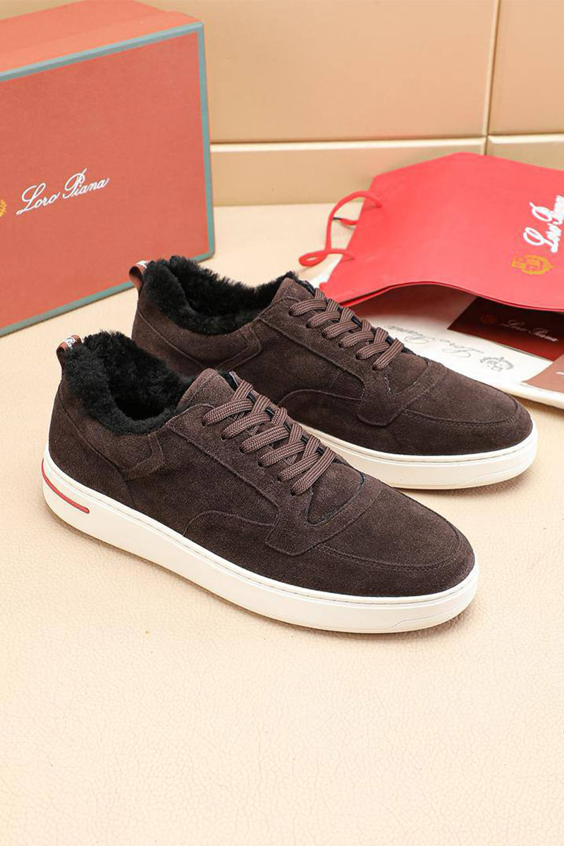 Кроссовки с мехом Loro Piana Newport Walk - Brown