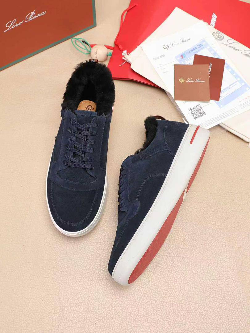 Кроссовки с мехом Loro Piana Newport Walk - Navy