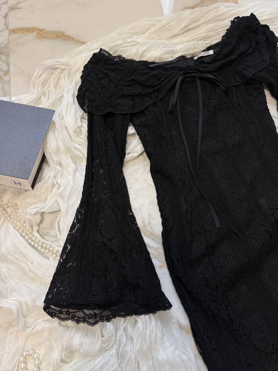 Кружевное женское платье с открытыми плечами MIU MIU
