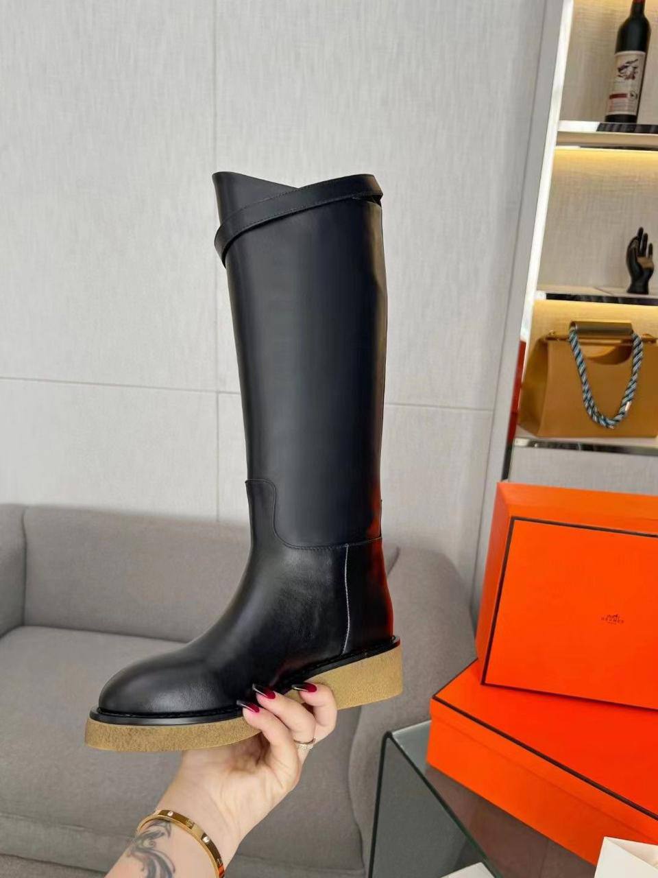 Женские чёрные кожаные сапоги Hermes