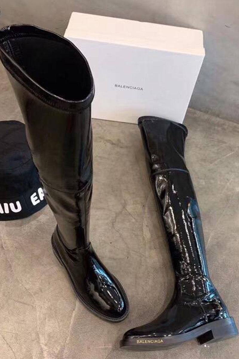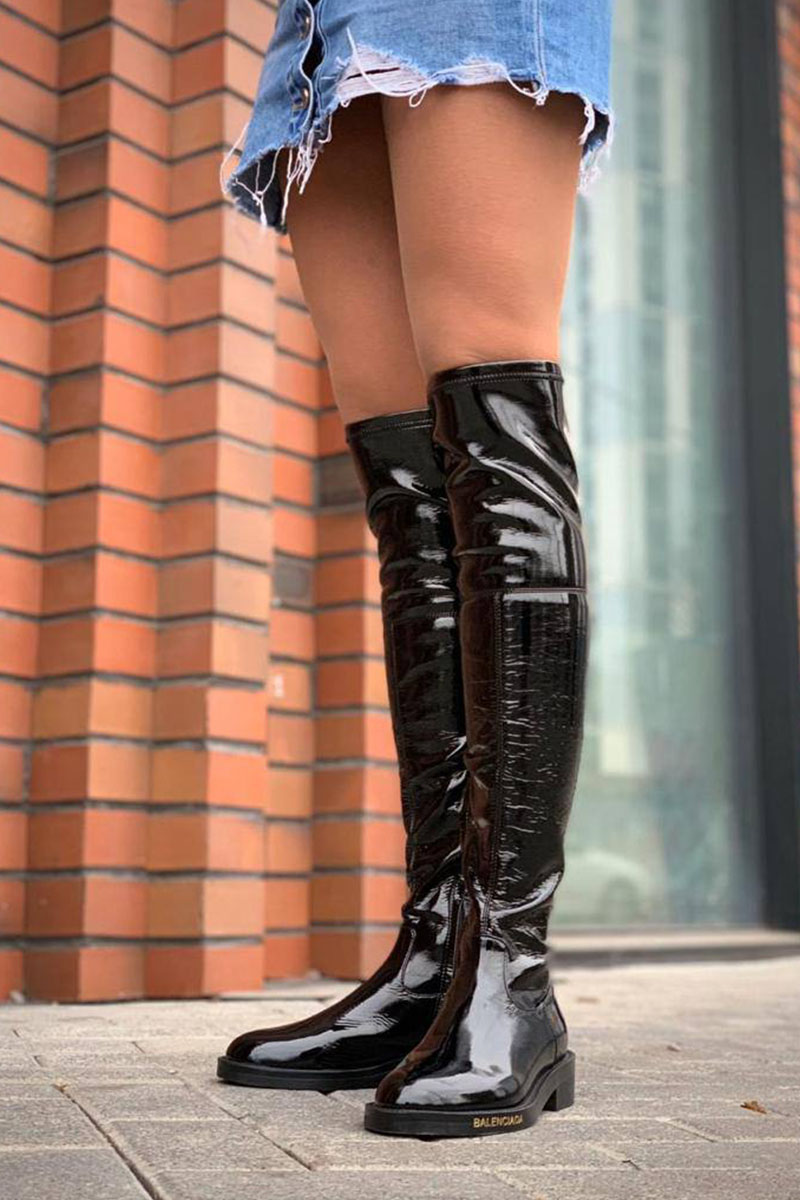 Женские глянцевые ботфорты Balenciaga чёрного цвета