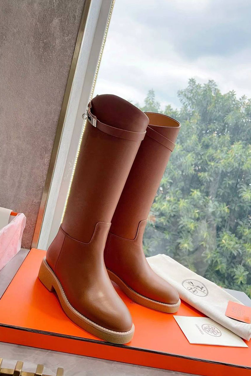 Женские кожаные сапоги Hermes Premium - Brown