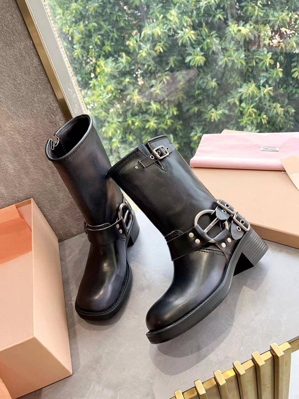 Женские кожаные сапоги MIU MIU Ankle Premium