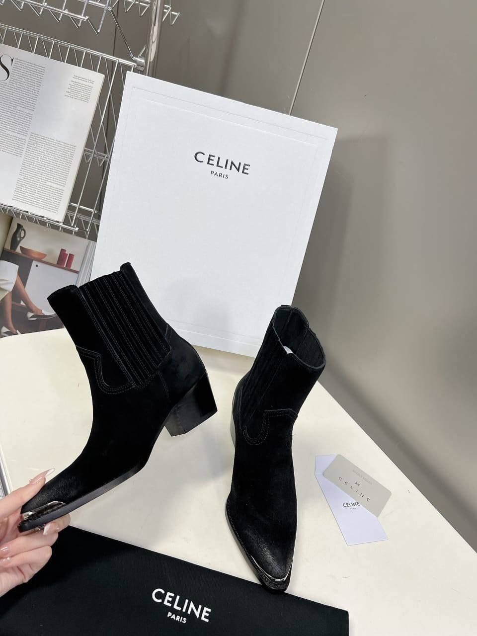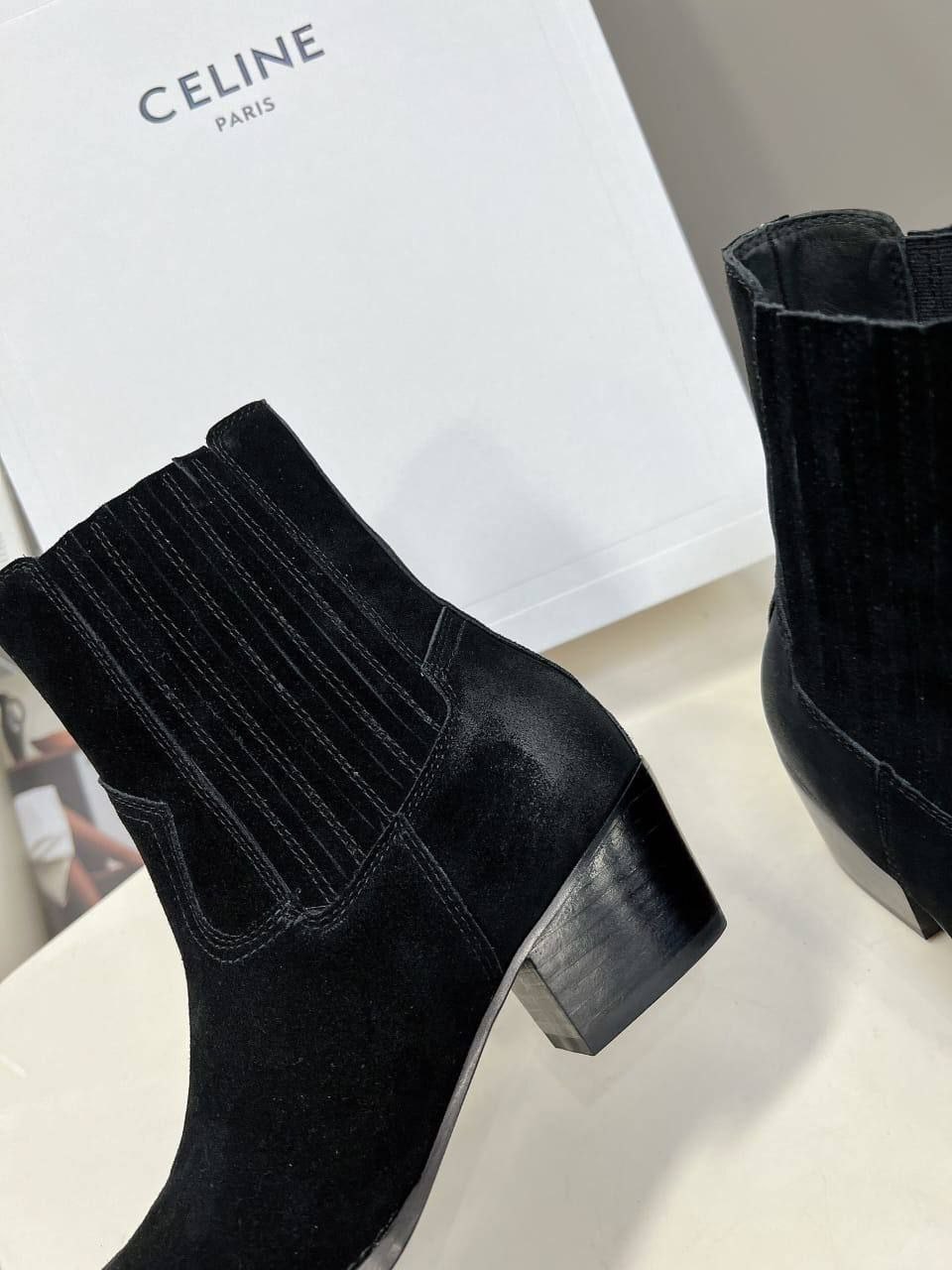 Женские замшевые сапоги Celine Premium - Black