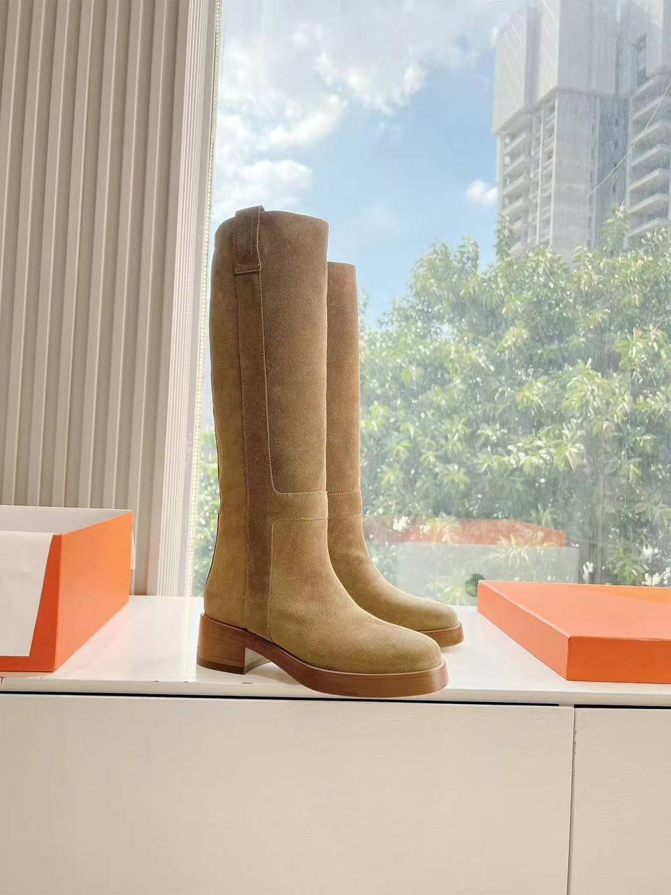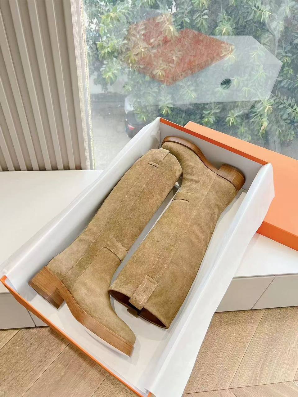 Женские замшевые сапоги Hermes Premium - Brown