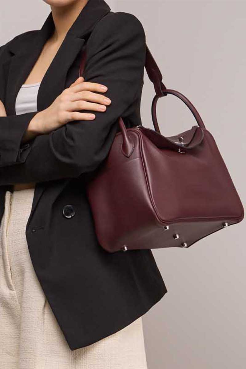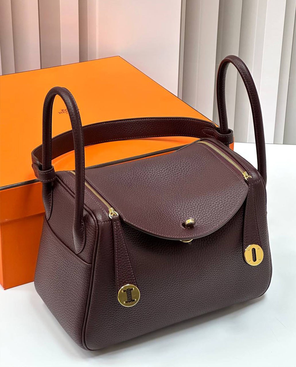 Женская кожаная сумка Hermes Lindy Premium 26x18x13 см - Burgundy