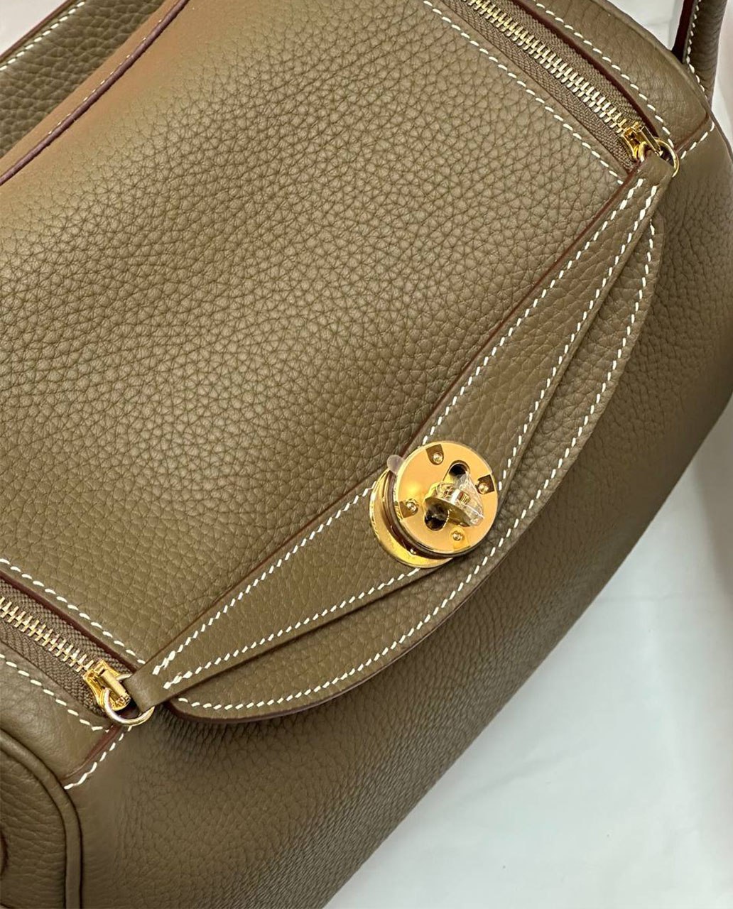 Женская кожаная сумка Hermes Lindy Premium 26x18x13 см - Olive
