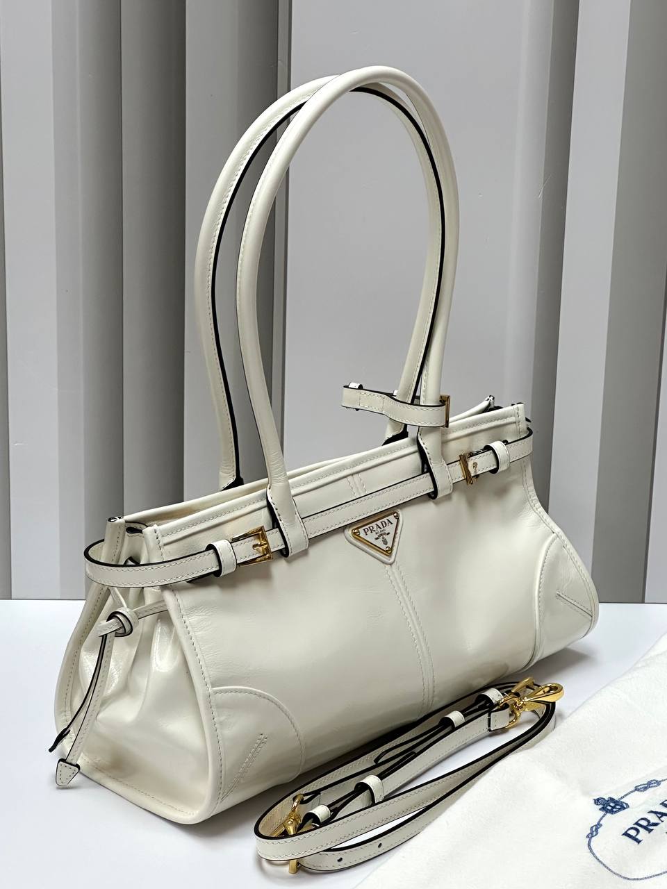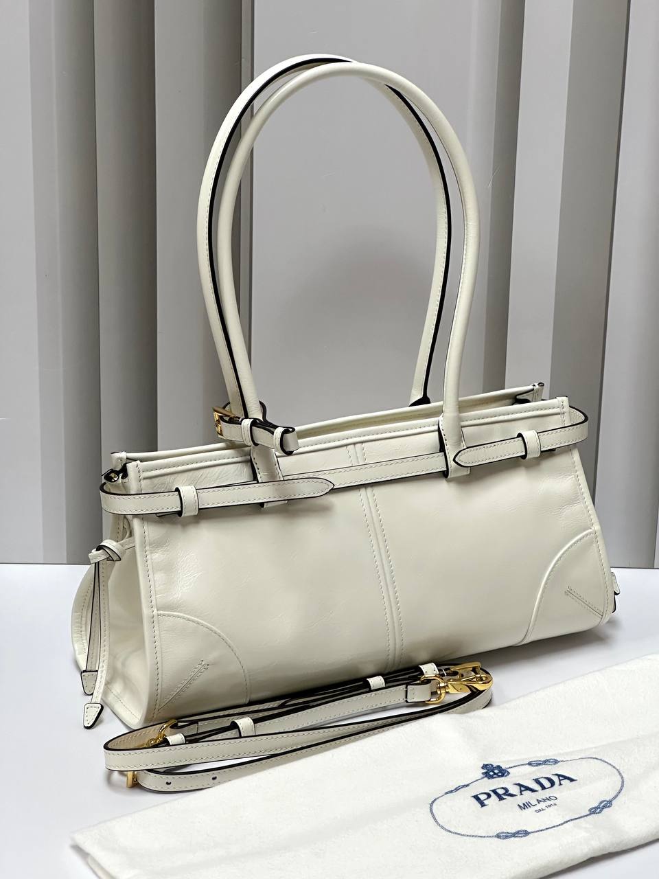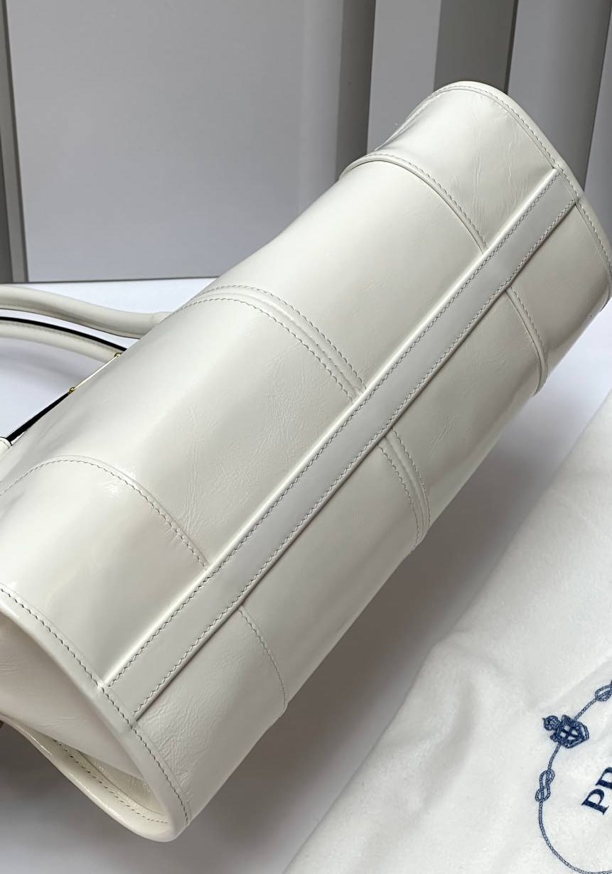 Кожаная белая сумка Prada Naplak Premium 32x15x11 см
