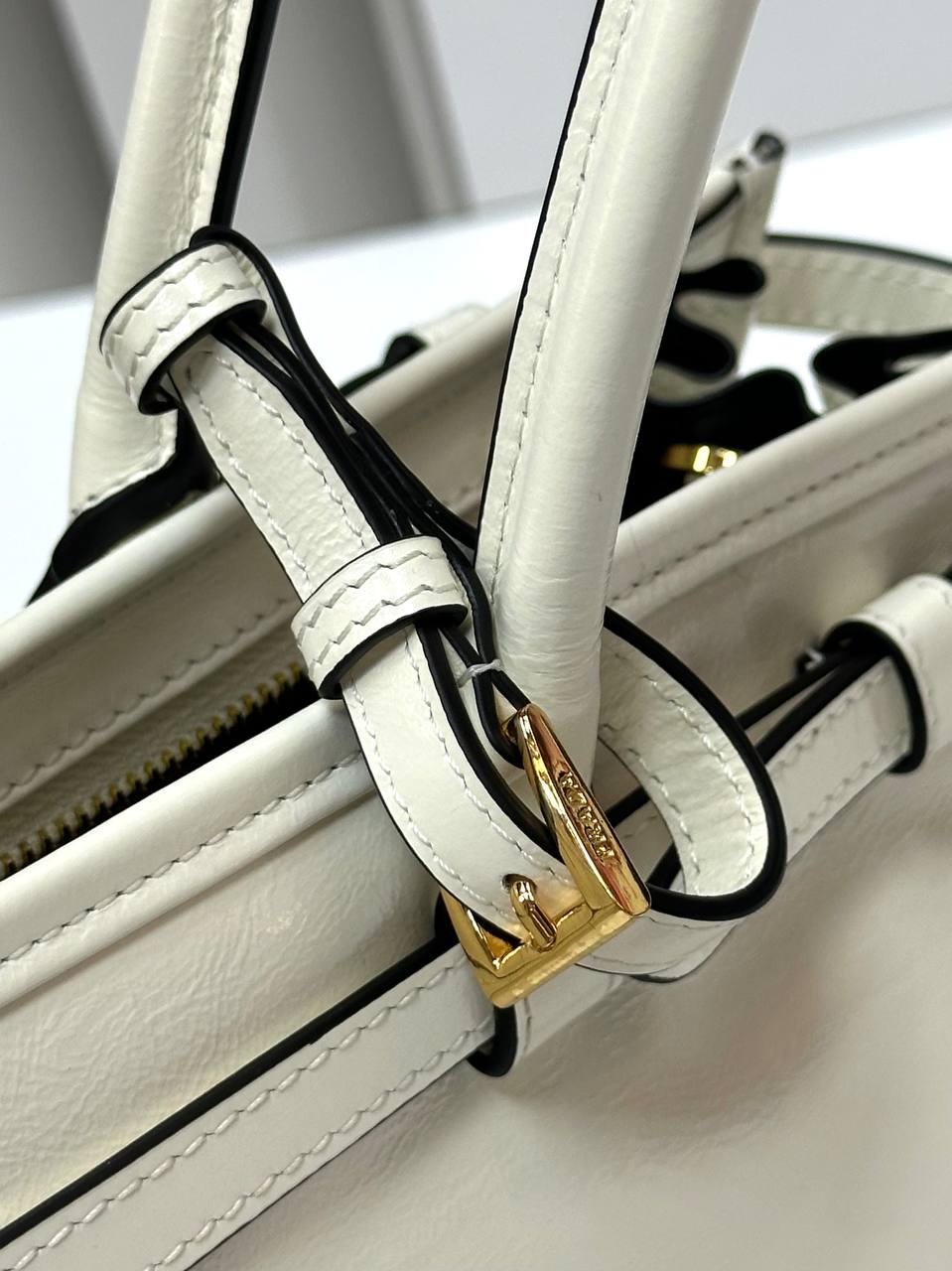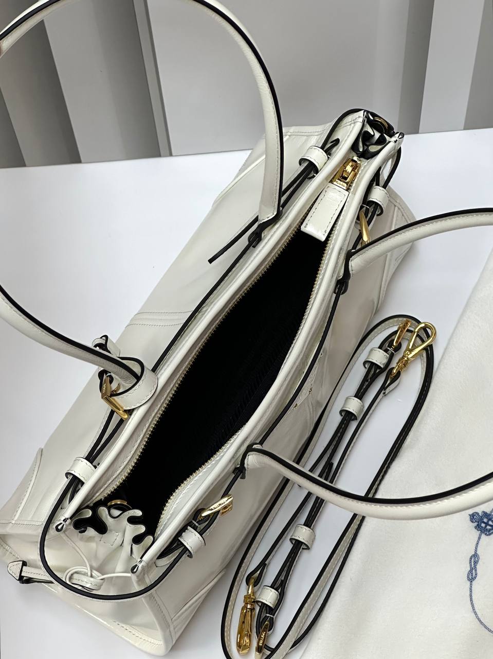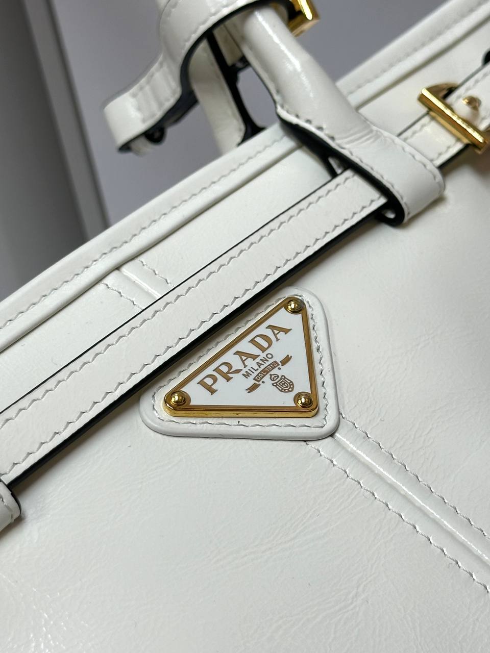 Кожаная белая сумка Prada Naplak Premium 32x15x11 см