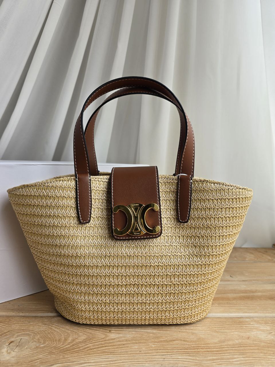 Плетёная сумка с кожаной отделкой Celine 30x18 см