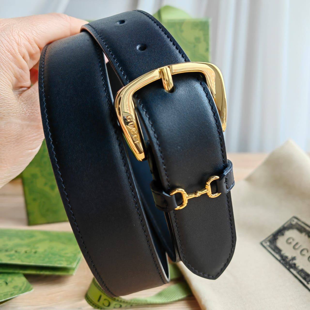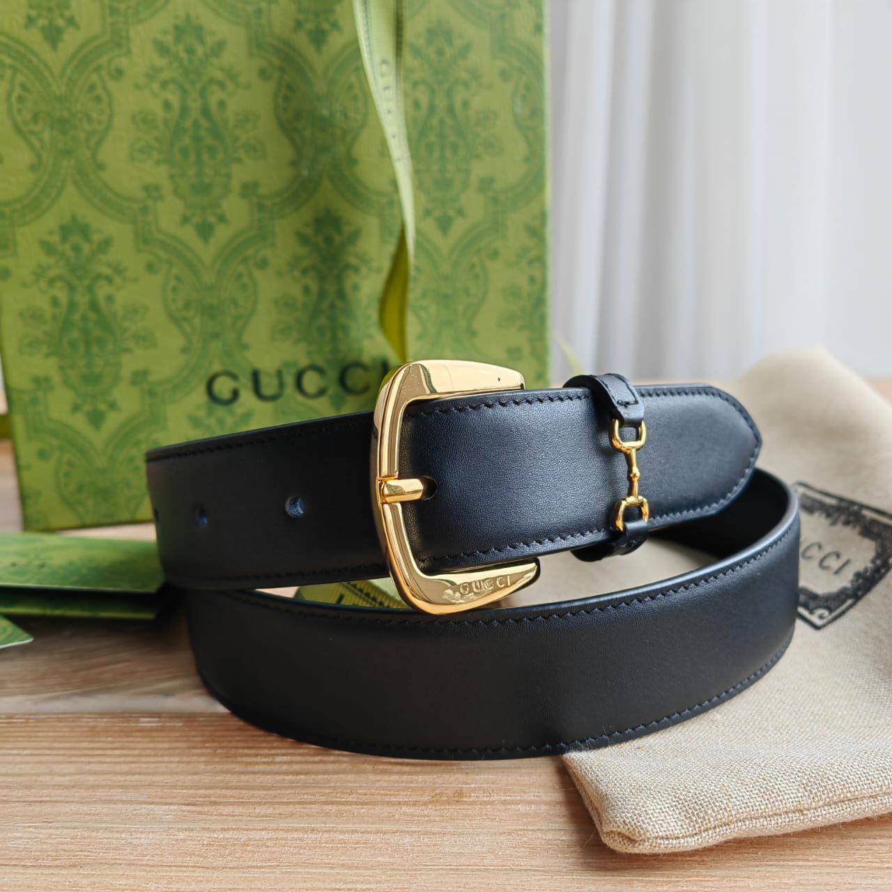 Кожаный ремень Gucci чёрного цвета (длина 80 / 85 см)