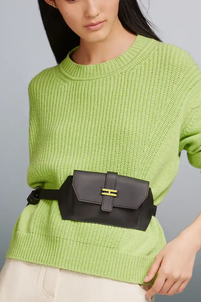 Кожаный ремень Hermes Elan Pocket 24x12 см - Black / Gold