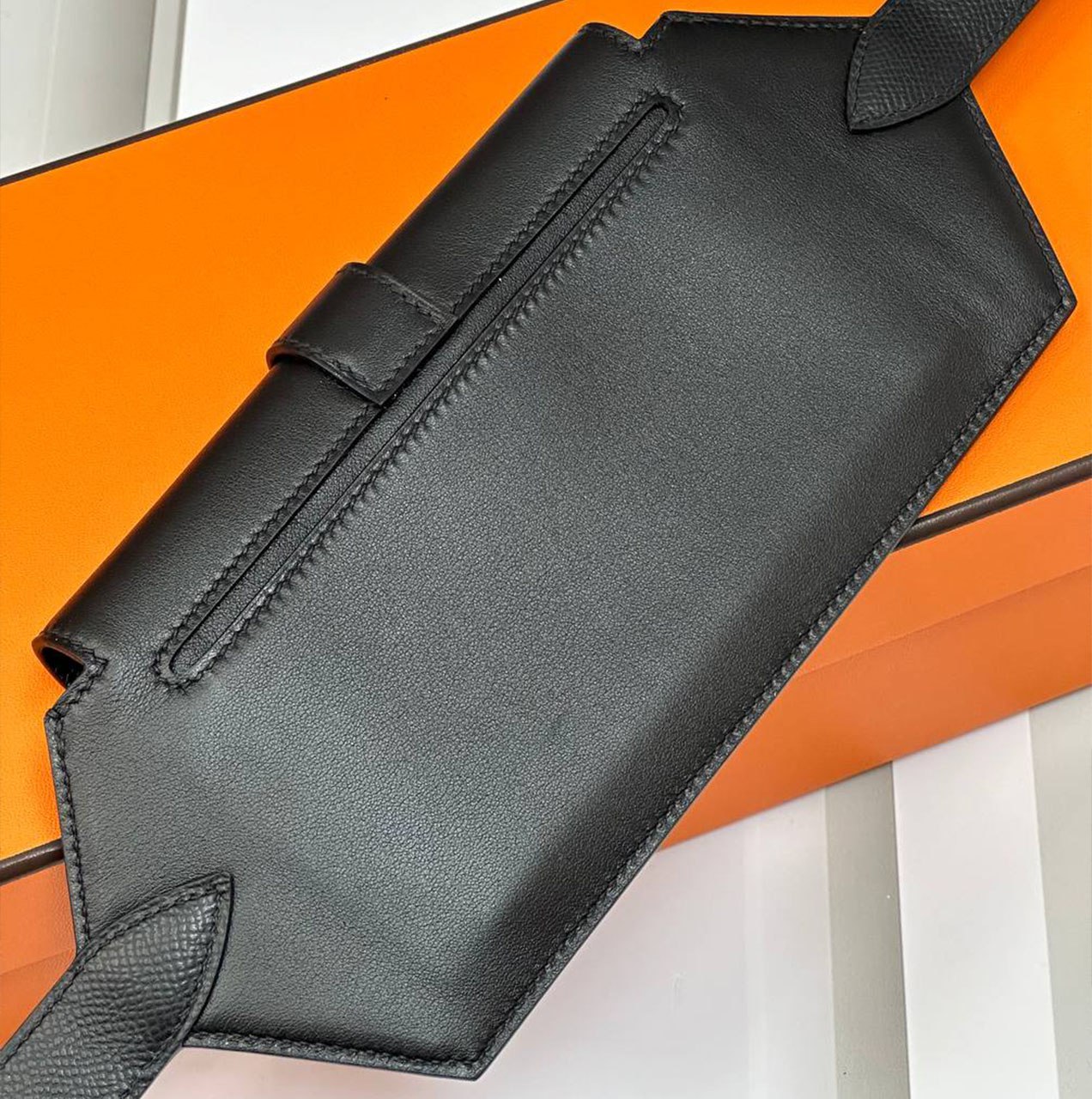 Кожаный ремень Hermes Elan Pocket 24x12 см - Black / Silver