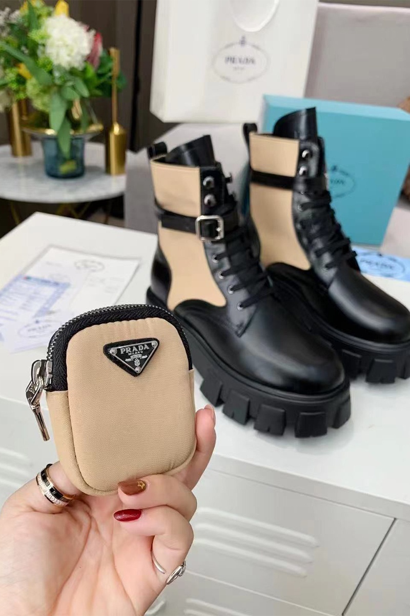 Кожаные женские ботинки Prada - Black / Beige