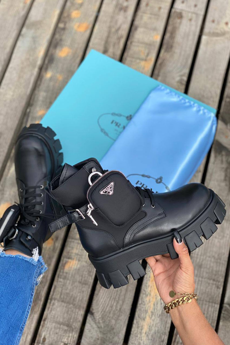 Кожаные женские ботинки Prada чёрного цвета