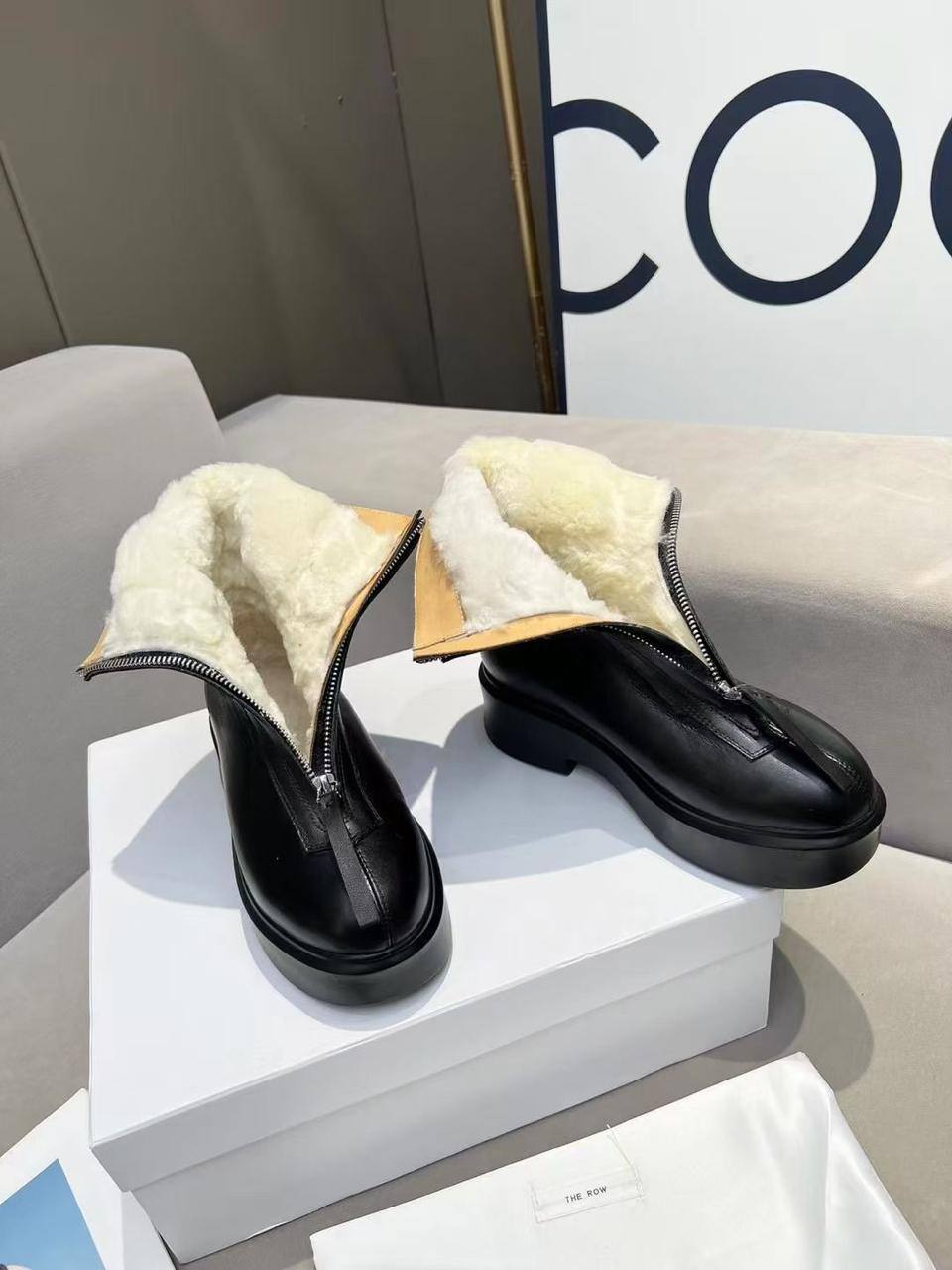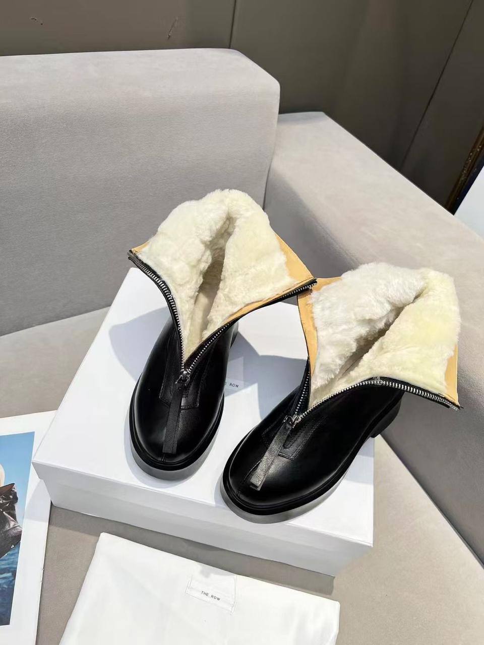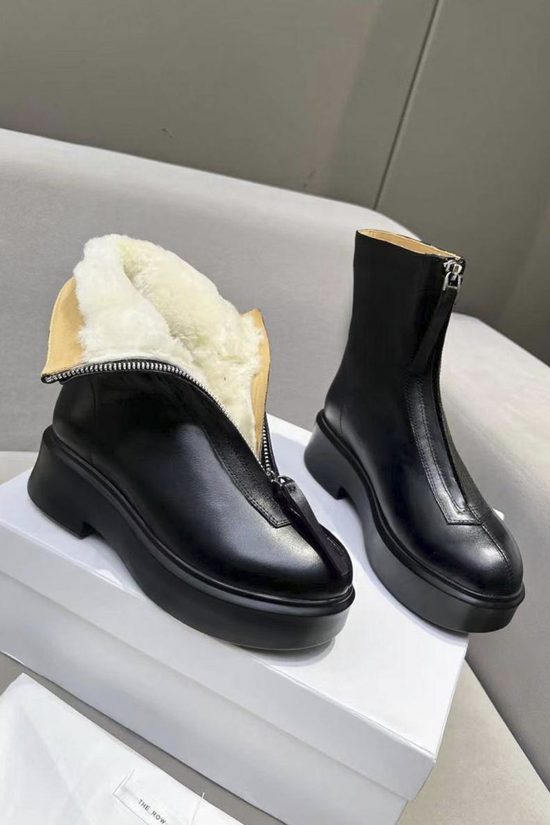 Женские чёрные ботинки с мехом The Row