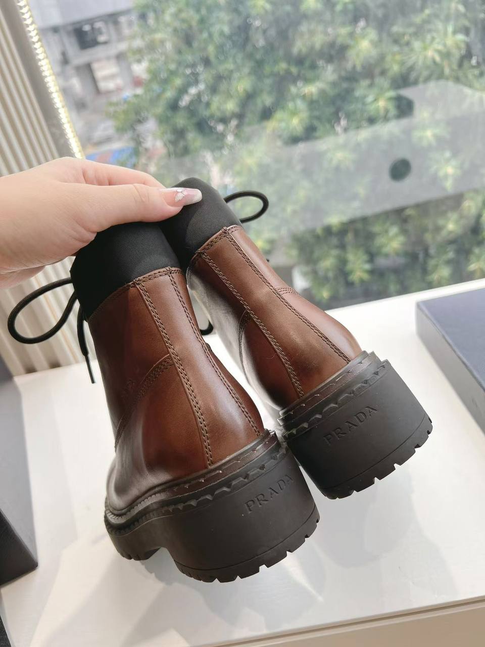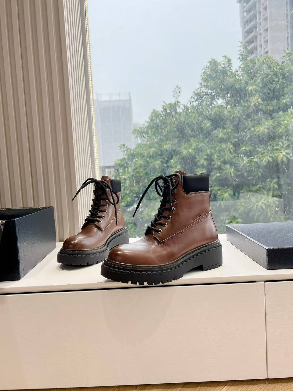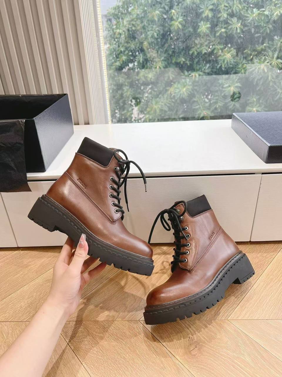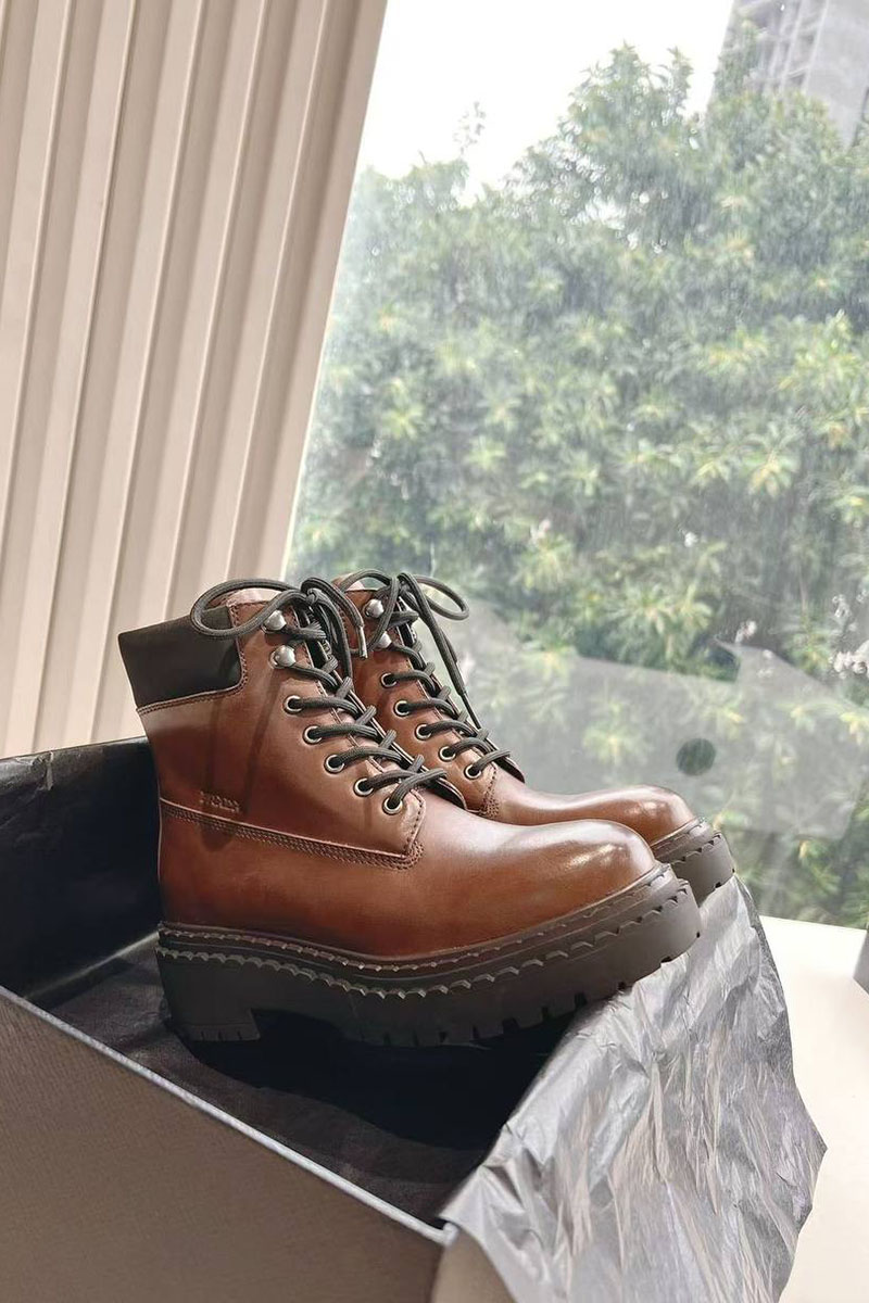 Женские коричневые ботинки Prada Premium