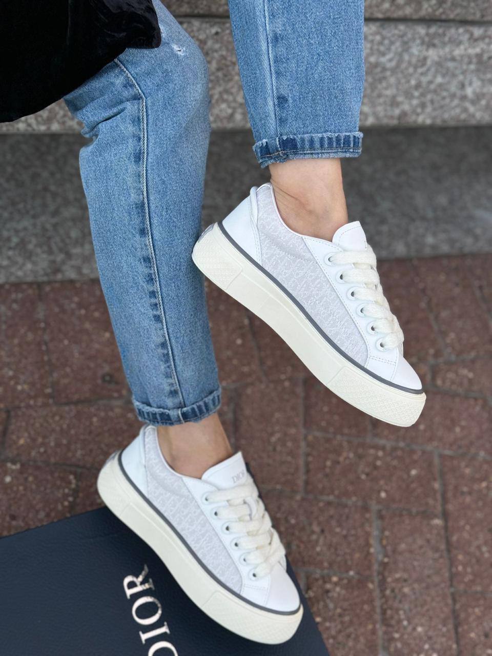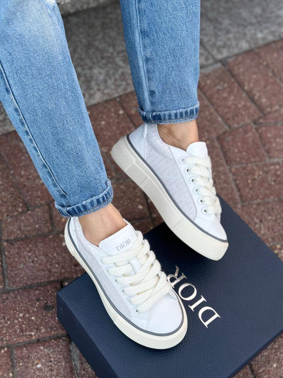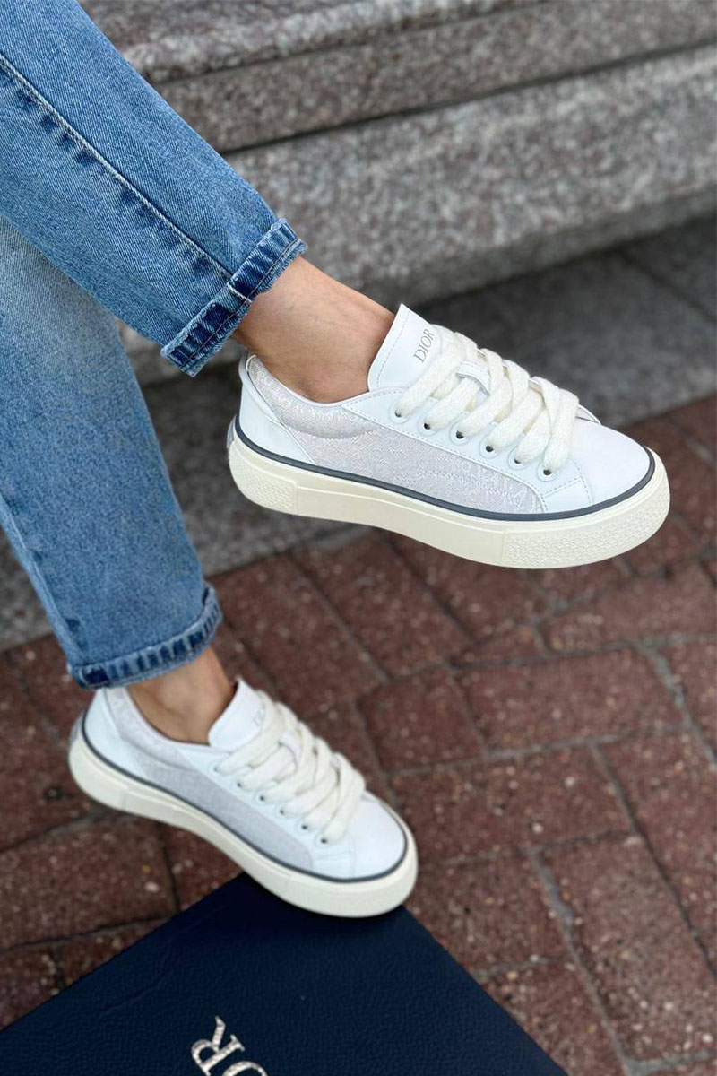Женские комбинированные кроссовки Dior белого цвета