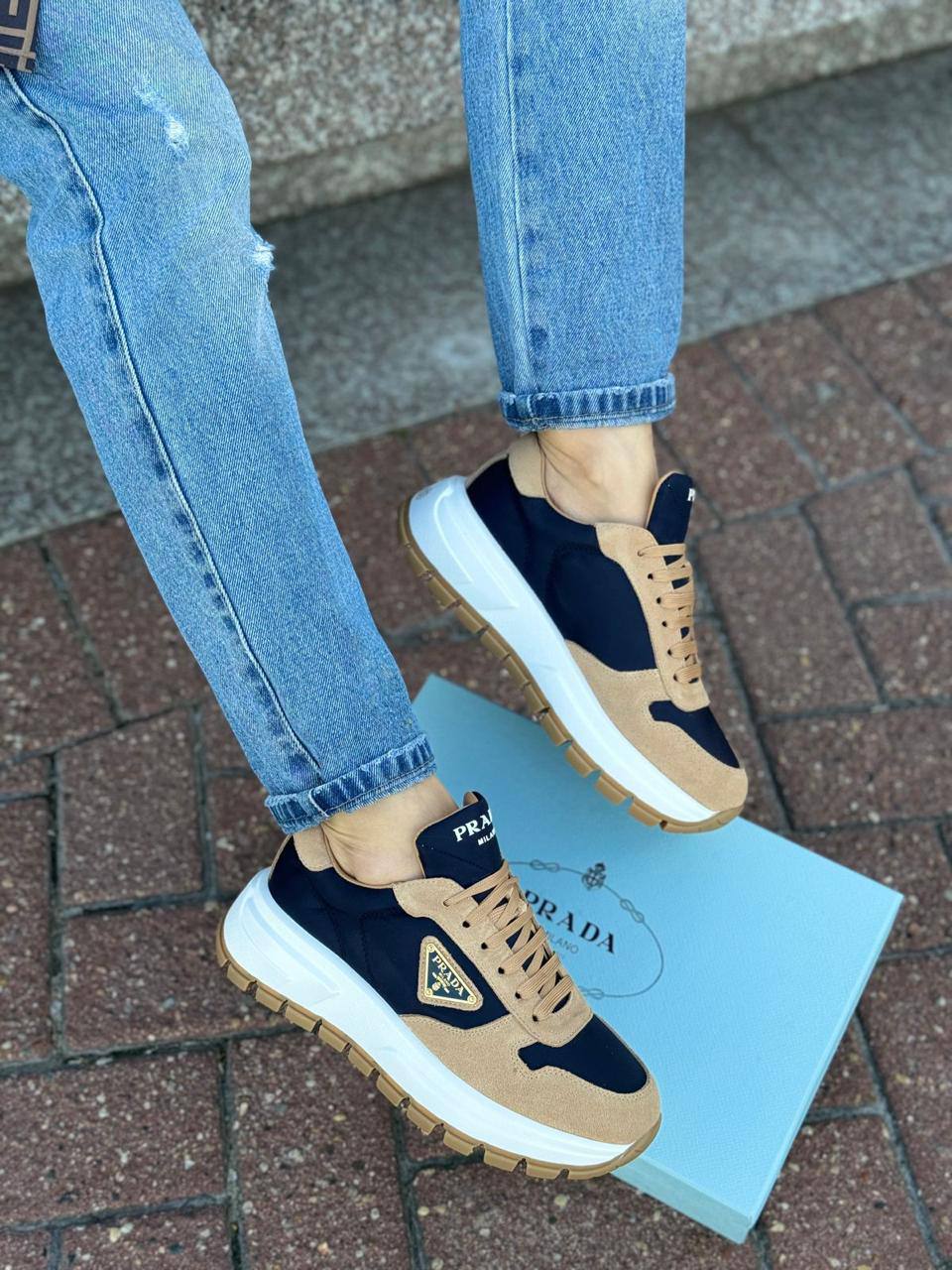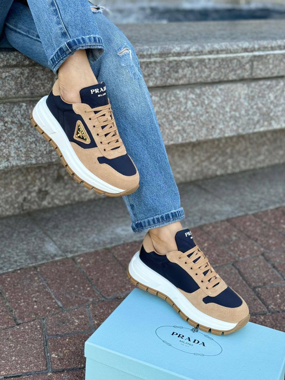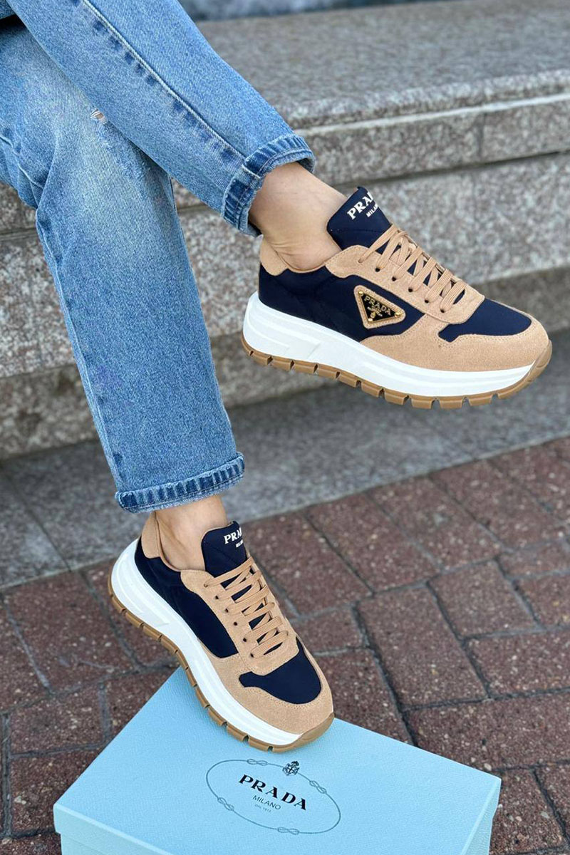 Женские комбинированные кроссовки Prada - Beige / Blue