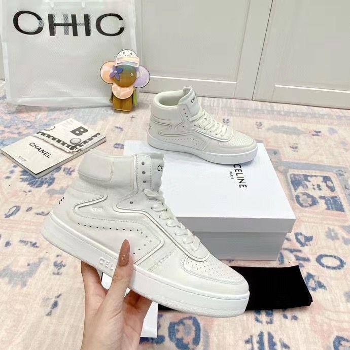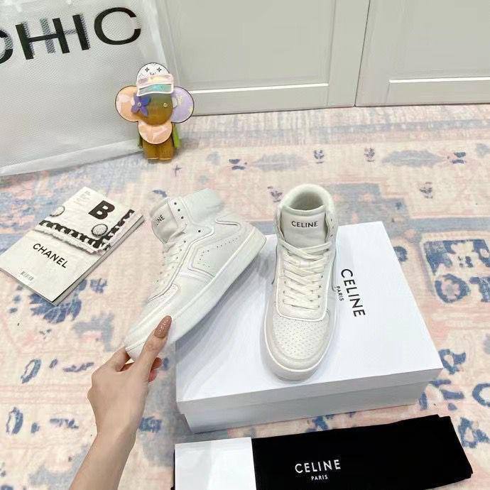 Женские кожаные кроссовки Celine белого цвета