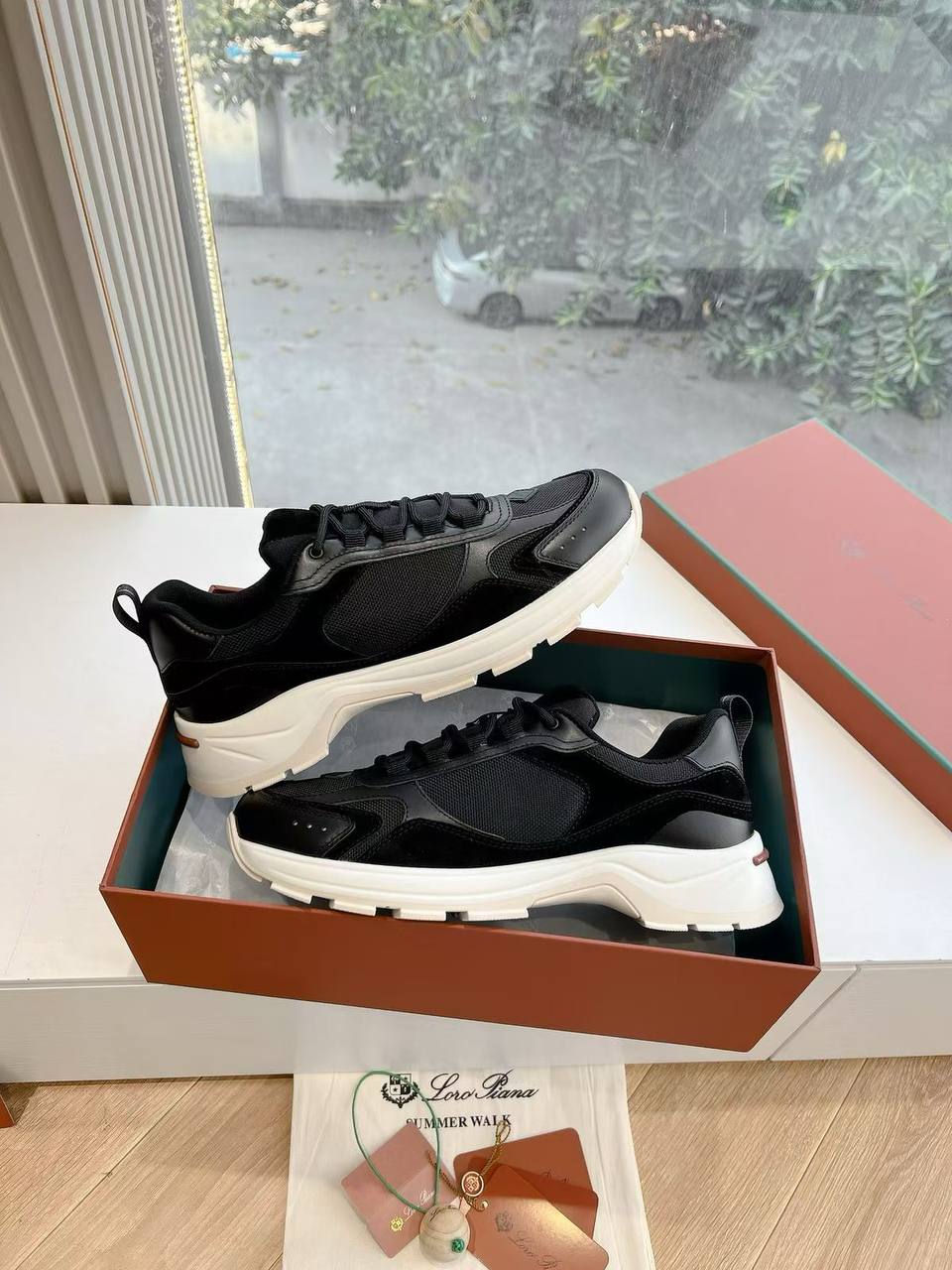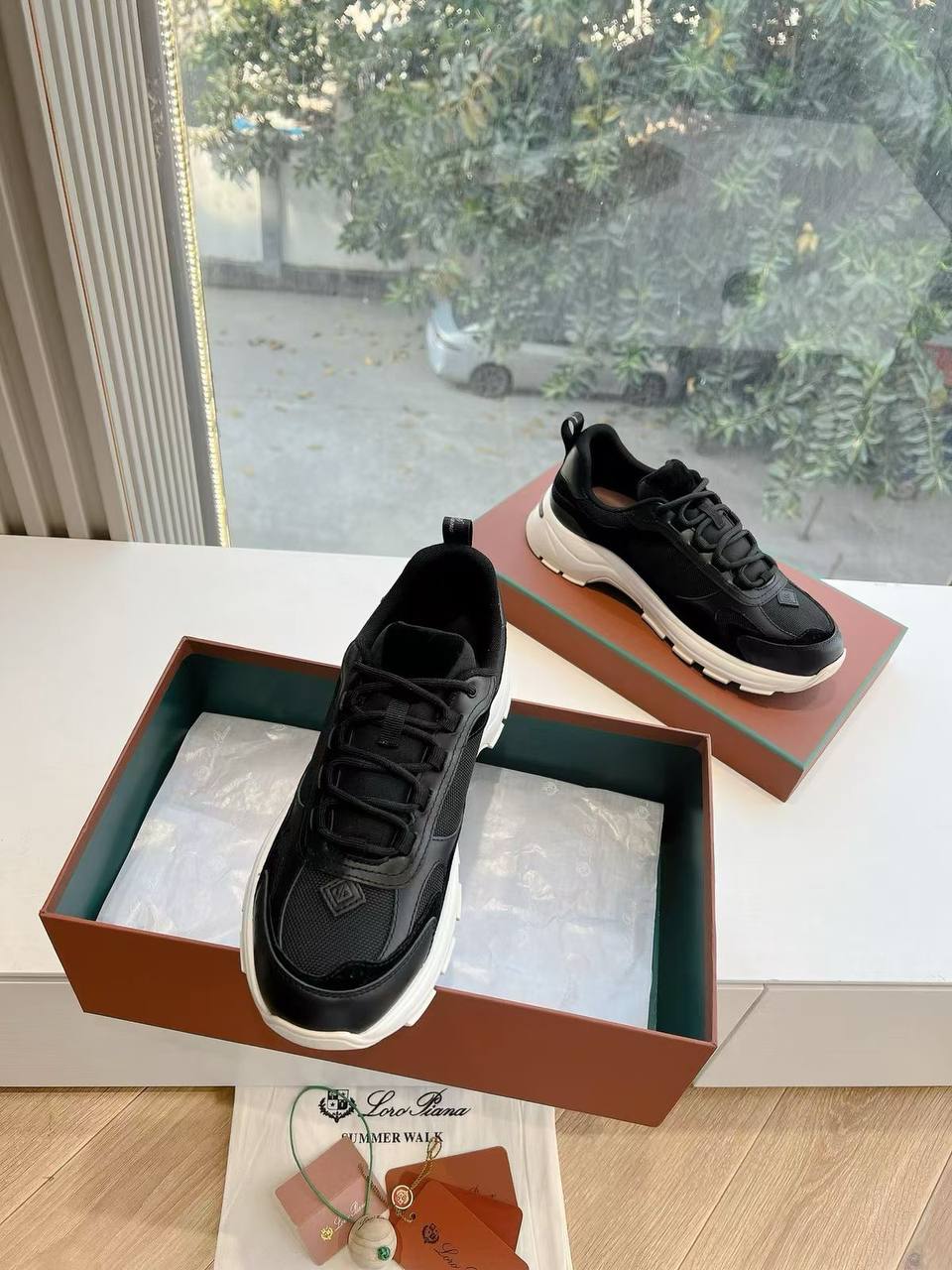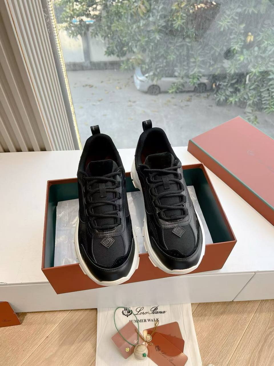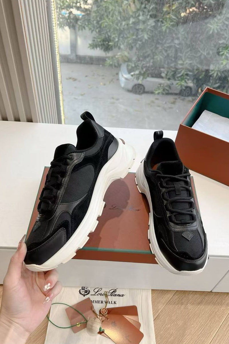 Женские кожаные кроссовки Loro Piana Premium - Black